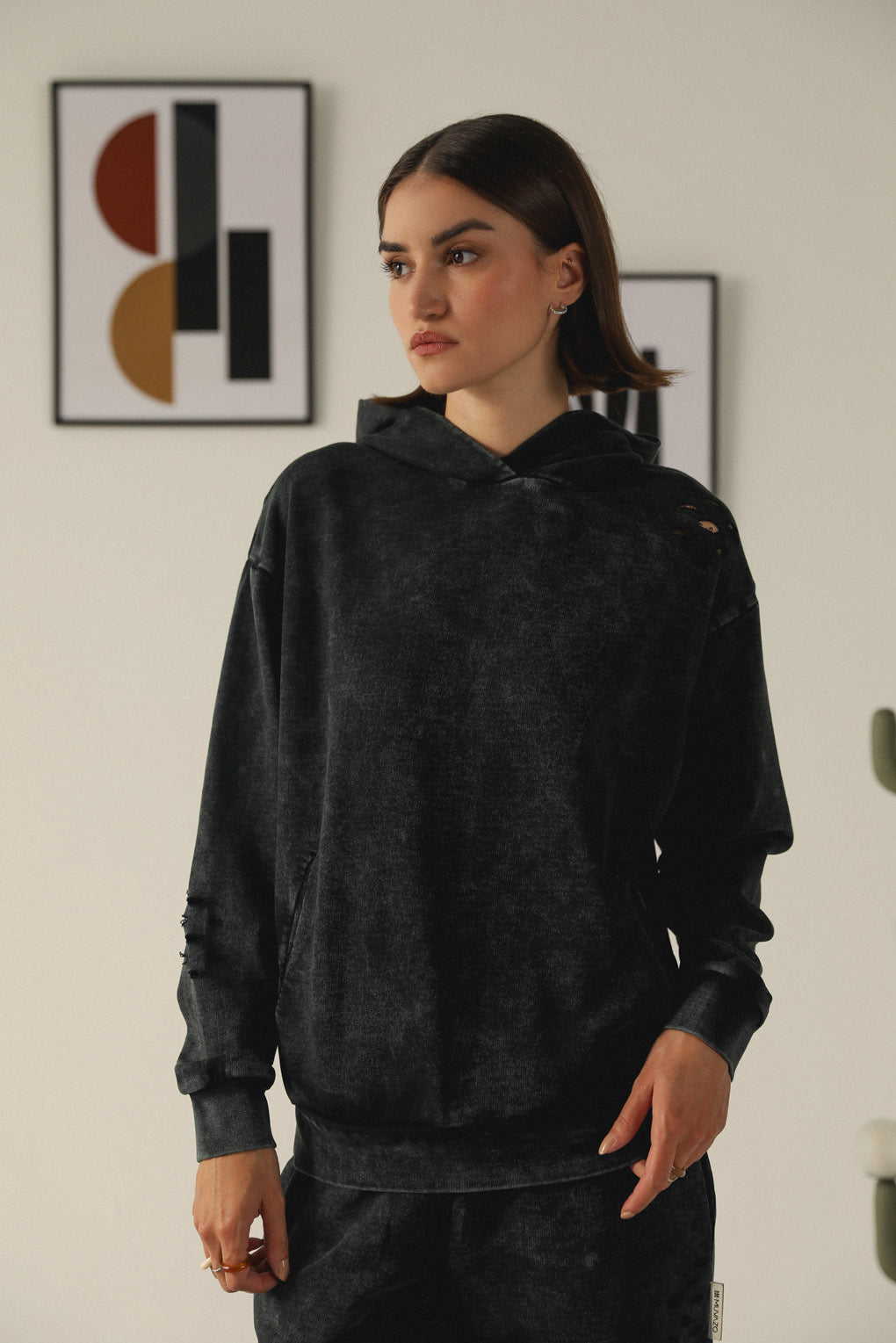 Get the ultimate blend of edge and comfort with our Acid Drift Hoodie, designed to stand out with its unique style and ultra-soft feel. Crafted from plush fabric, this hoodie features an acid-wash finish that adds a trendy, vintage vibe, while the ripped detailing gives it a touch of raw, effortless cool. The relaxed fit and cozy hood make it perfect for layering or wearing on its own. Whether paired with jeans, joggers, or leggings, this hoodie adds a stylish, streetwear-inspired look to any outfit.
