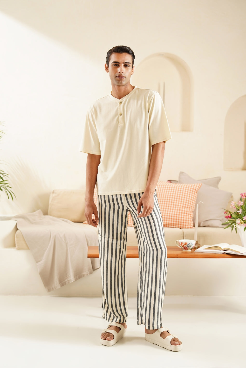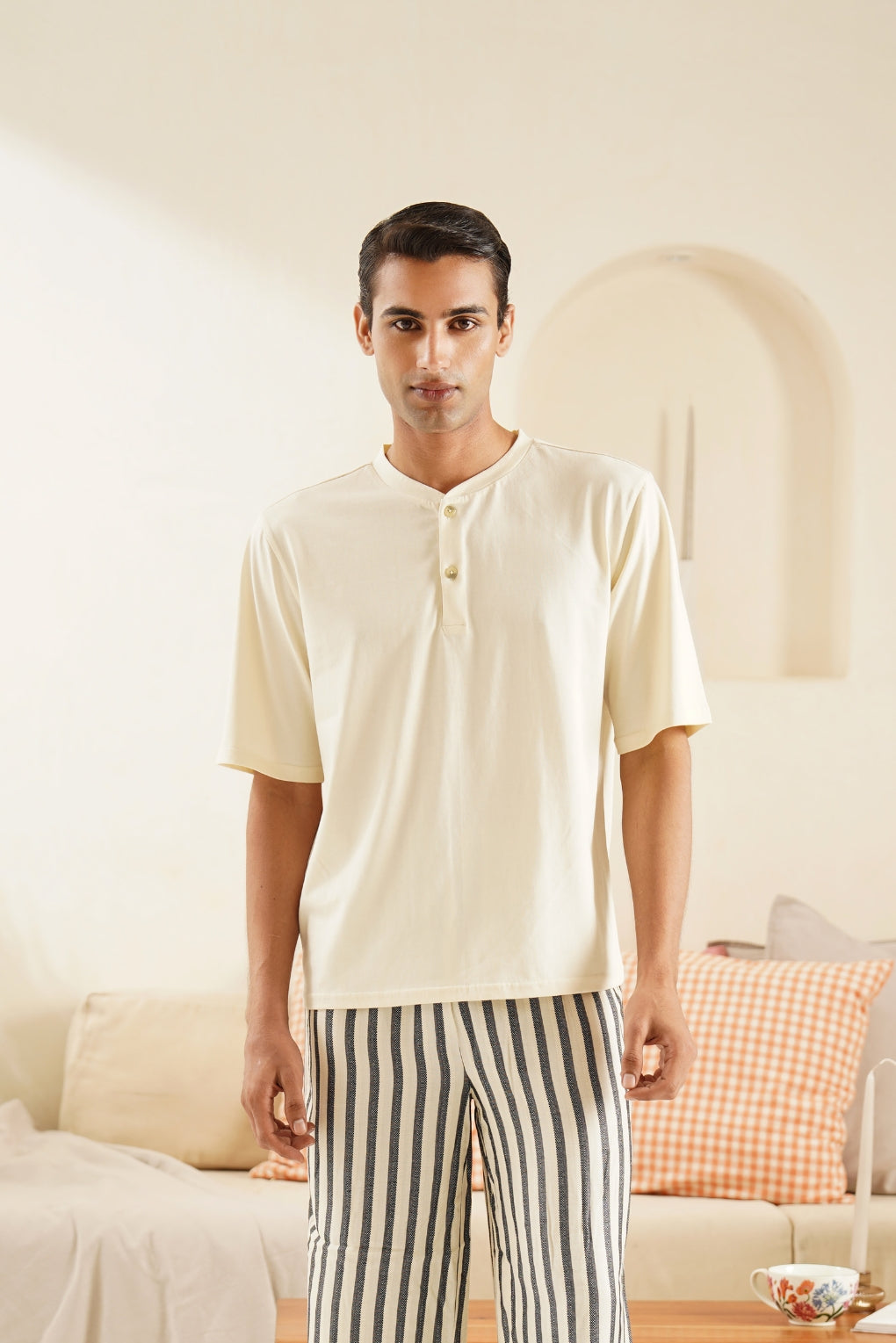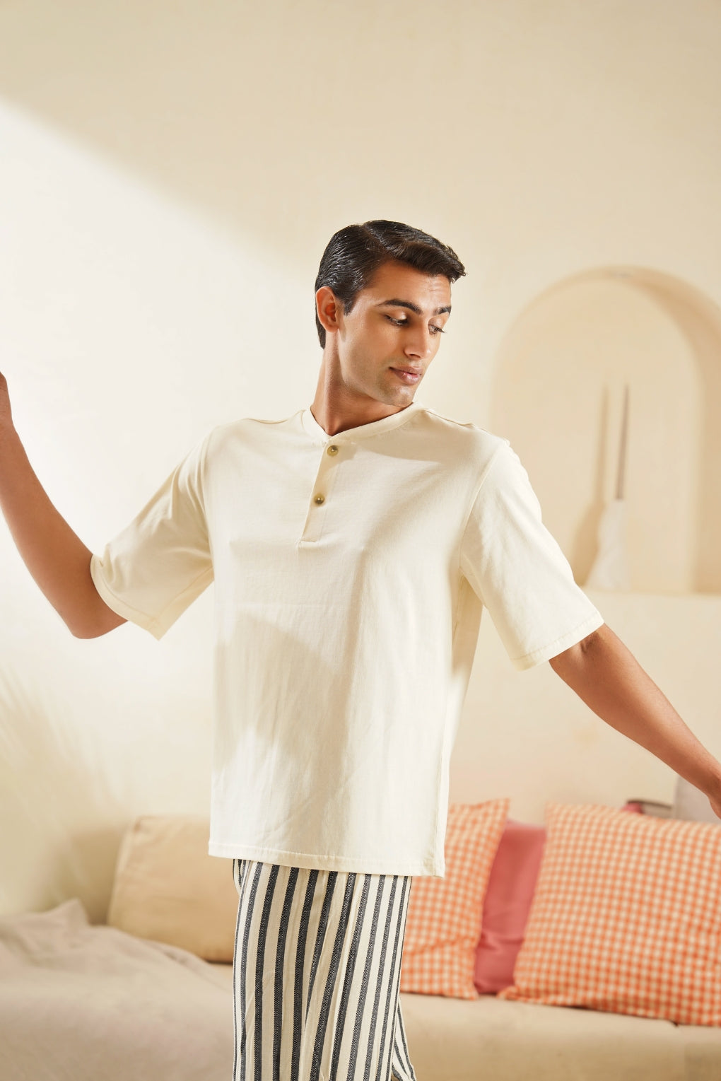 Indulge in effortless sophistication with the Aureon Henley Tee. Crafted from ultra-soft cotton, this relaxed-fit tee features a subtle buttoned placket, lending a refined touch to your nightwear and loungewear. Its breathable fabric ensures all-night comfort, while the neutral hue makes it a versatile staple for both lounging and casual outings.