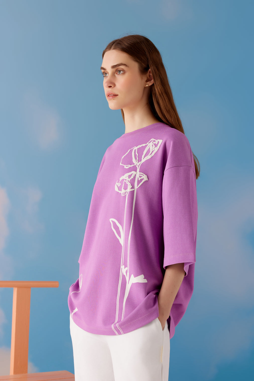 Shop this stunning 3D printed tee, adorned with beautifully placed florals perfectly proportioned for an eye-catching look.
