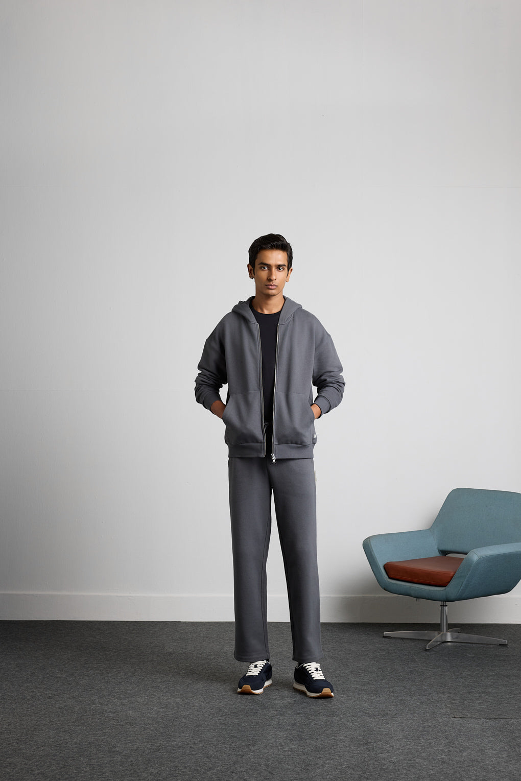 Experience ultimate comfort and modern style with our Charcoal Stream Co-ord Set. It includes a dual-zipper hoodie crafted from premium warm fleece, offering exceptional softness and warmth. The dual zippers provide versatile styling options, while the high-quality fleece ensures lasting comfort and durability. Paired with straight-fit pants designed for a clean, tailored look, the joggers feature an adjustable waist with a drawcord for a personalised fit. Perfect for lounging, running errands, or casual outings, this co-ord set combines sophisticated design with cozy practicality, making it a versatile and stylish addition to any wardrobe.