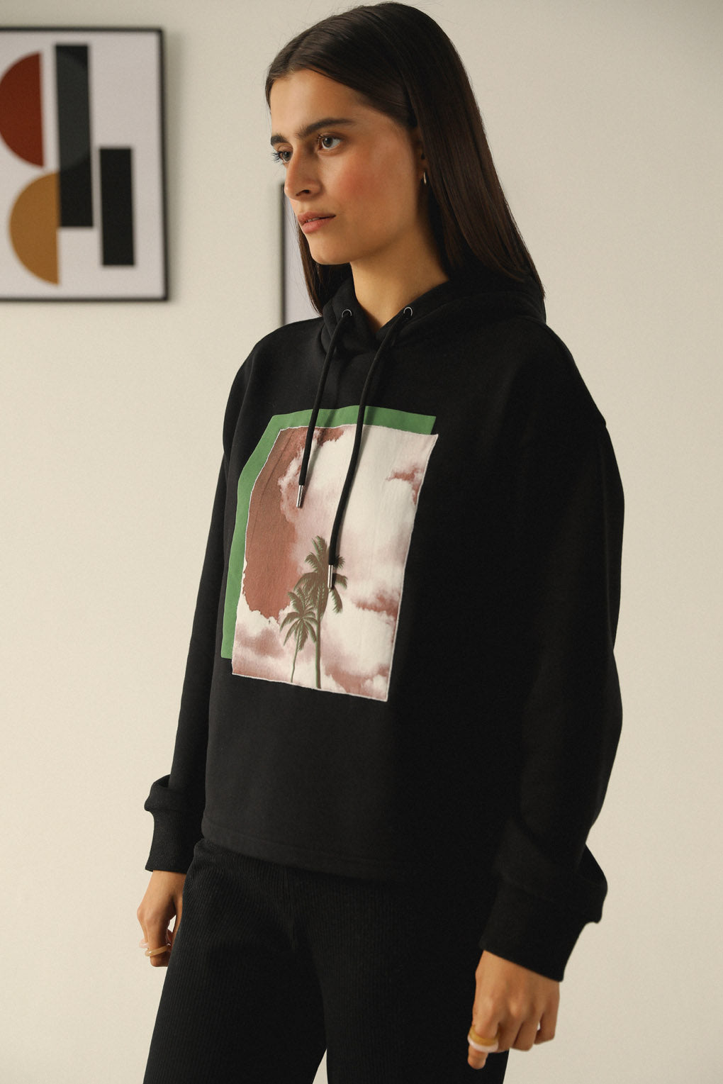 Get ready to embrace the laid-back vibes of the coast with our Cozy Coastal Hoodie. Crafted from soft, high-quality fabric, this stylish piece wraps you in warmth and comfort, making it the perfect addition to your casual wardrobe. The front showcases a stunning palm tree print, evoking memories of summer days and beach getaways. This vibrant design adds a playful touch, making it easy to style with your favorite high-waisted shorts, jeans, or leggings.