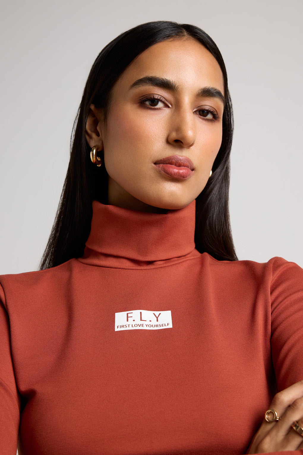 Elevate your wardrobe with the sleek F.L.Y Bodysuit. Crafted from soft, stretchy fabric, this bodysuit offers a snug, comfortable fit that contours to your body for a polished look. The high neck adds a touch of elegance, while the minimalist F.L.Y print provides a modern, understated flair. Ideal for layering or wearing on its own, this versatile piece transitions effortlessly from day to night, making it a chic addition to any fashion-forward wardrobe.