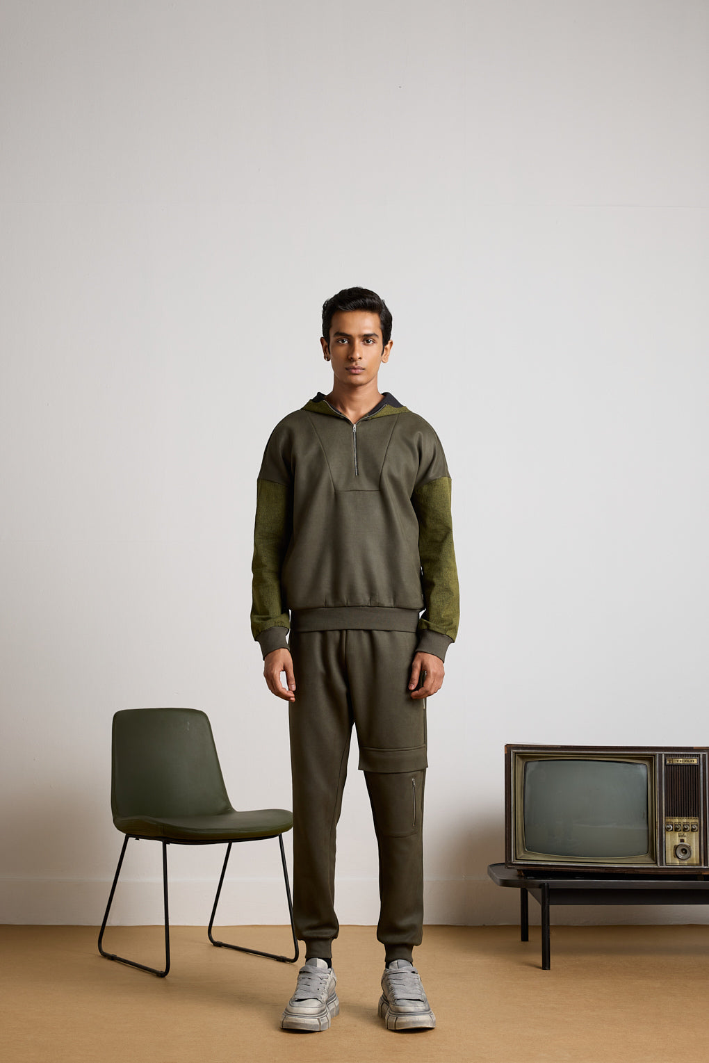Elevate your style with our Forest Dive Co-ord Set, expertly crafted for a perfect blend of comfort and sophistication. The sweatshirt features a unique mix of textured scuba and washed denim, offering a distinctive and stylish look. Paired with matching joggers made from the same premium fabric, the set ensures a cohesive, refined aesthetic. The joggers include a comfortable ribbed waistband for a secure fit and ribbed cuffs for a snug feel. A front patch pocket on one leg adds a functional yet stylish detail. This co-ord set is ideal for casual outings or lounging, combining contemporary design with luxurious comfort.