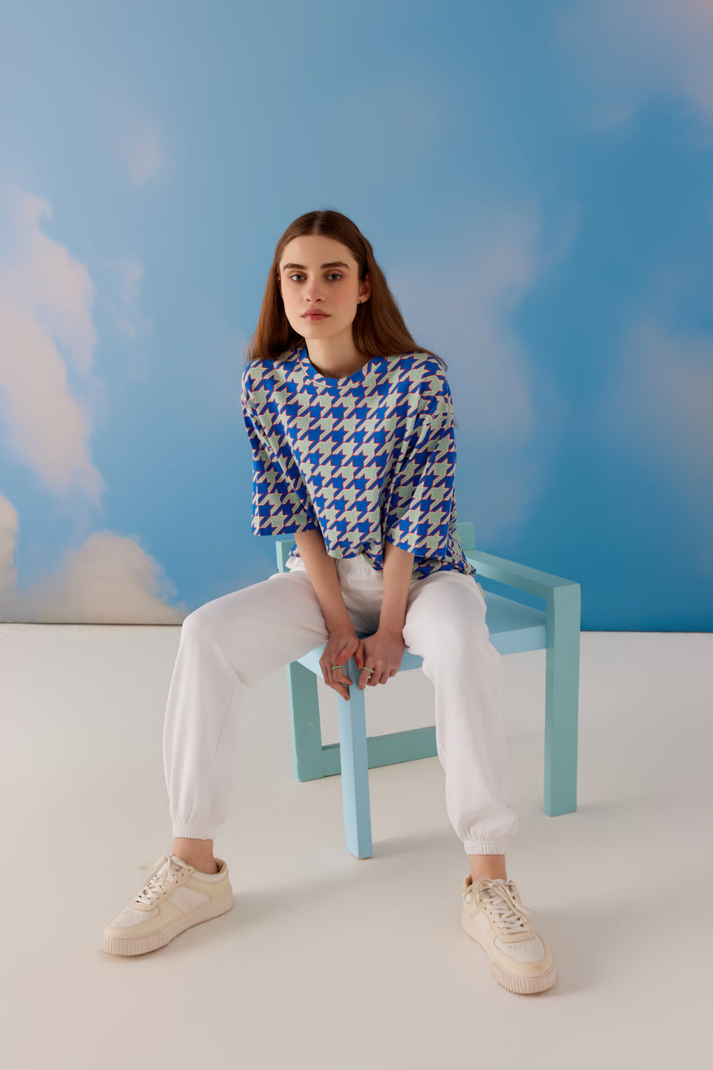 Discover this all-over houndstooth printed tee, boasting a smart, repeated print that guarantees a standout look.