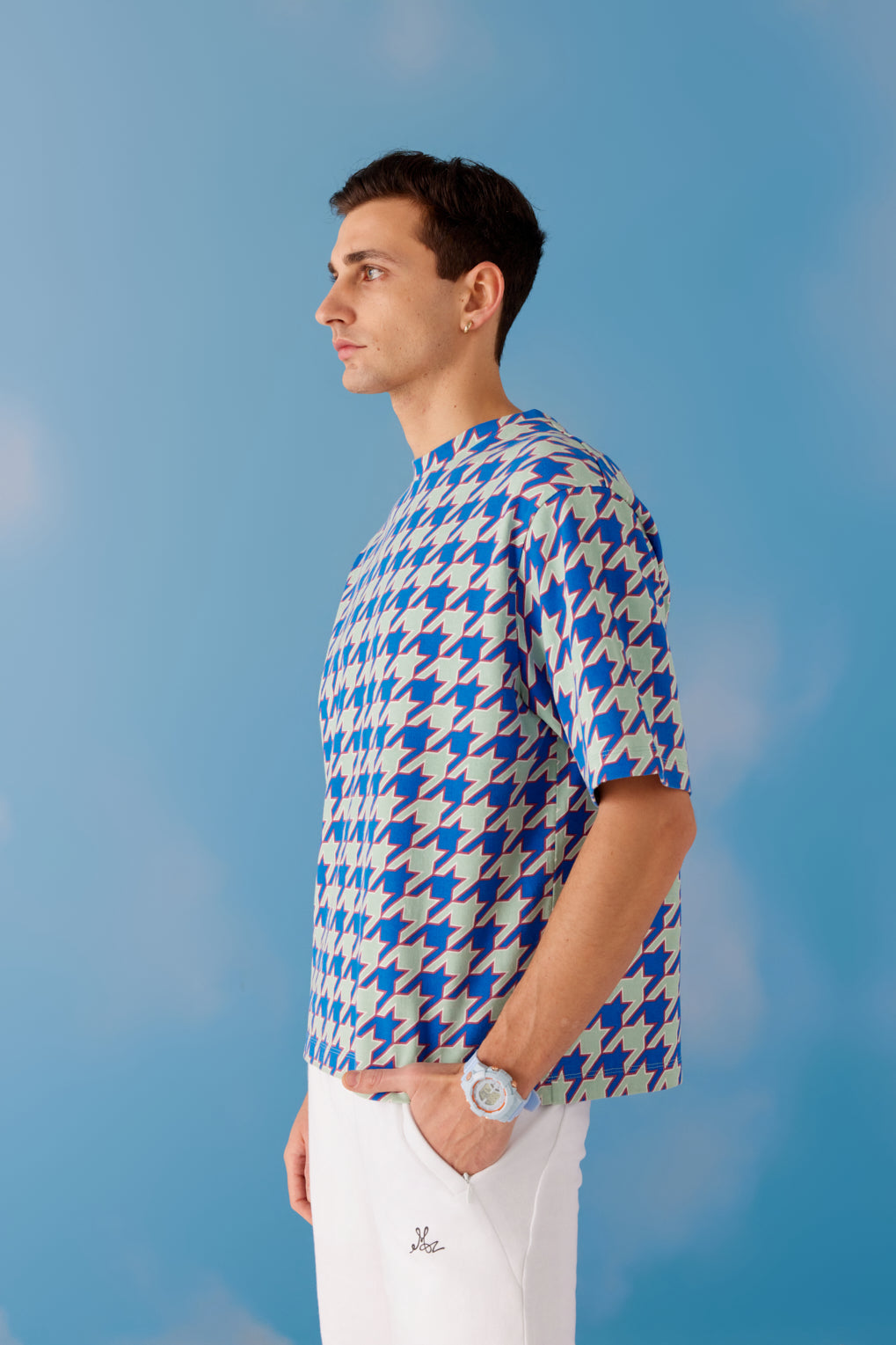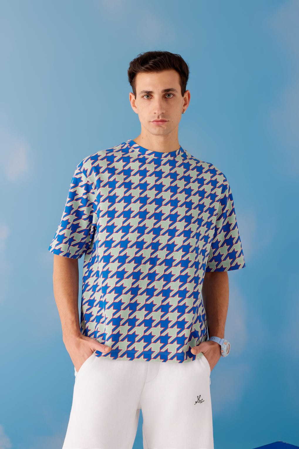 Discover this all-over houndstooth printed tee, boasting a smart, repeated print that guarantees a standout look.