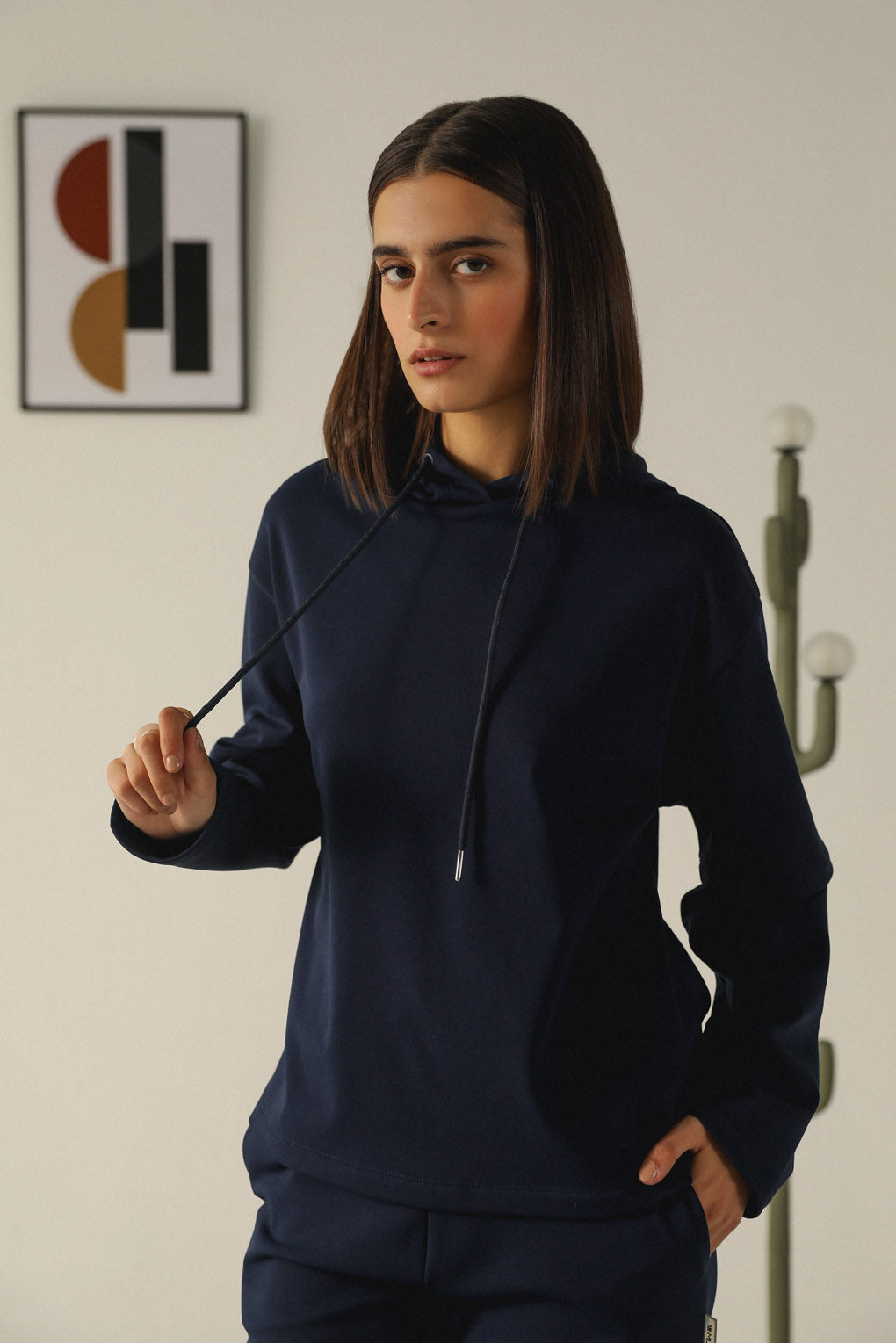 Sweat Top: Classic hoodie design with a relaxed fit for easy styling.