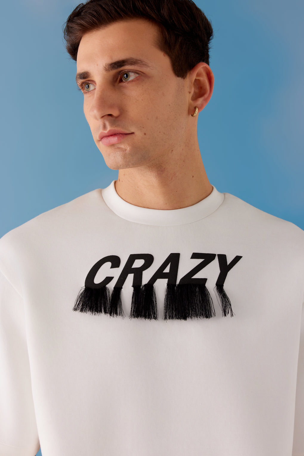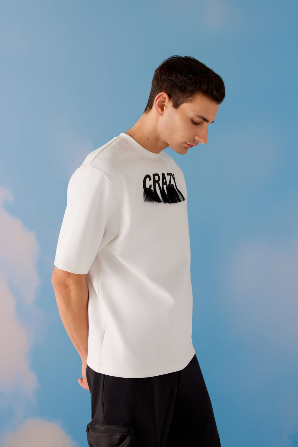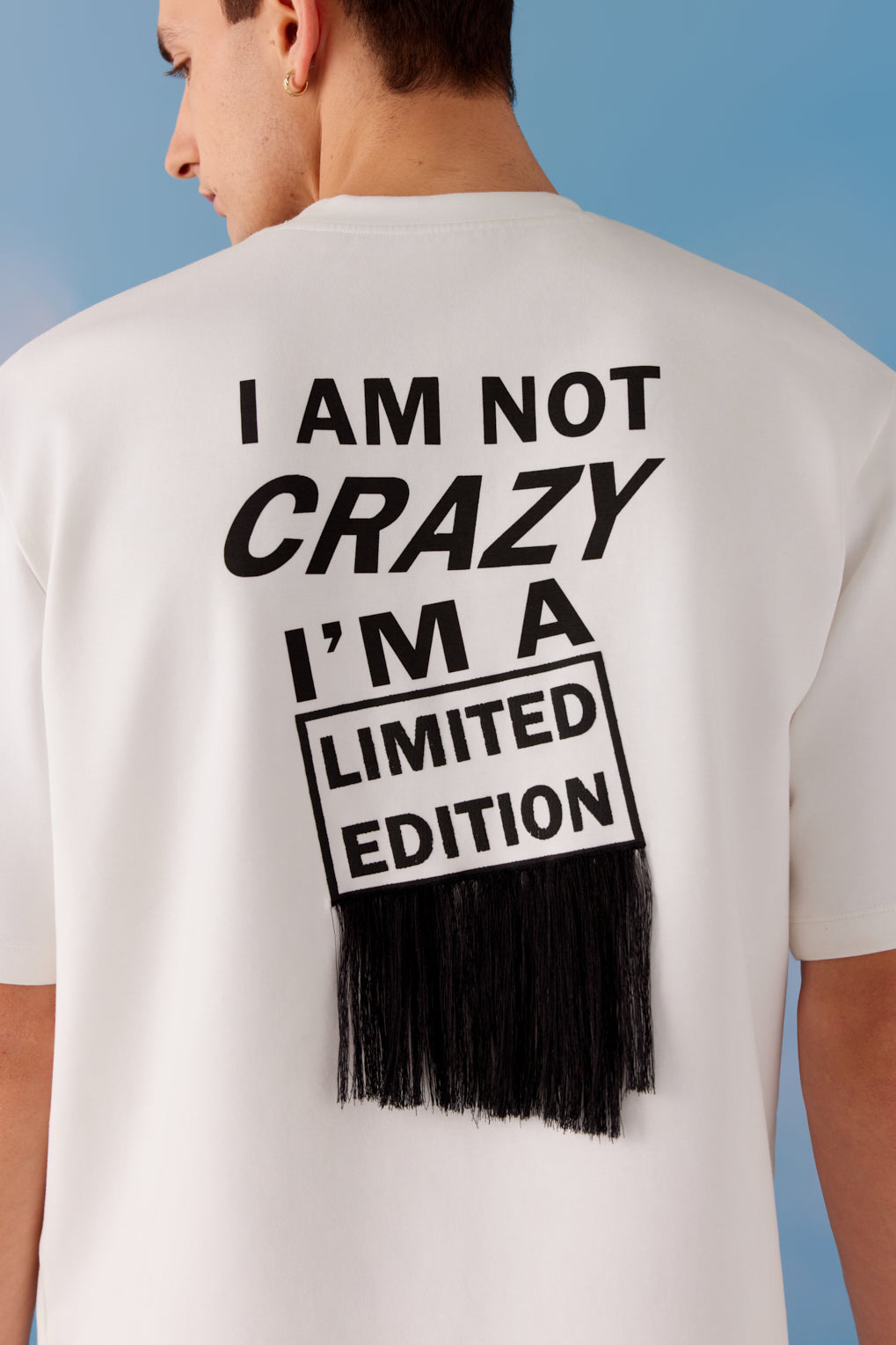 Get your hands on this exclusive oversized unisex tee with a limited edition printed graphic and 3D fringe overlay. Elevate your style and slay in this must-have piece!