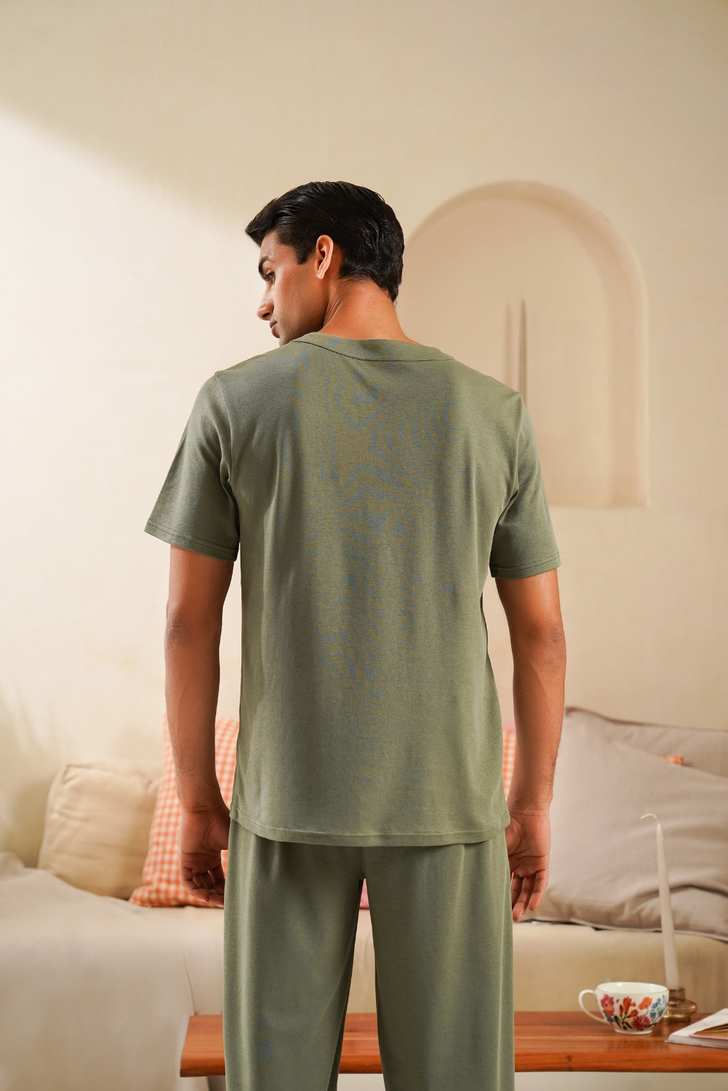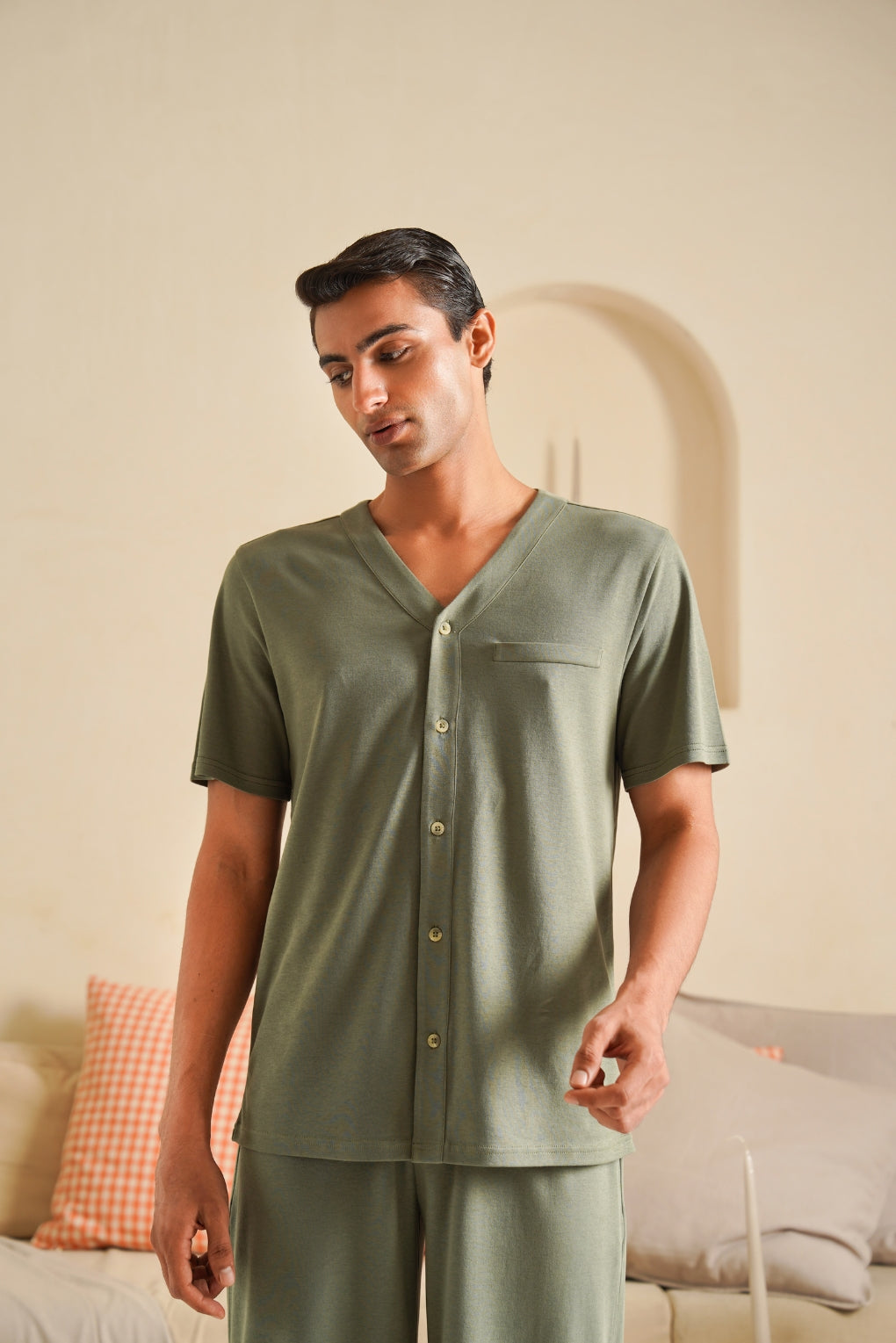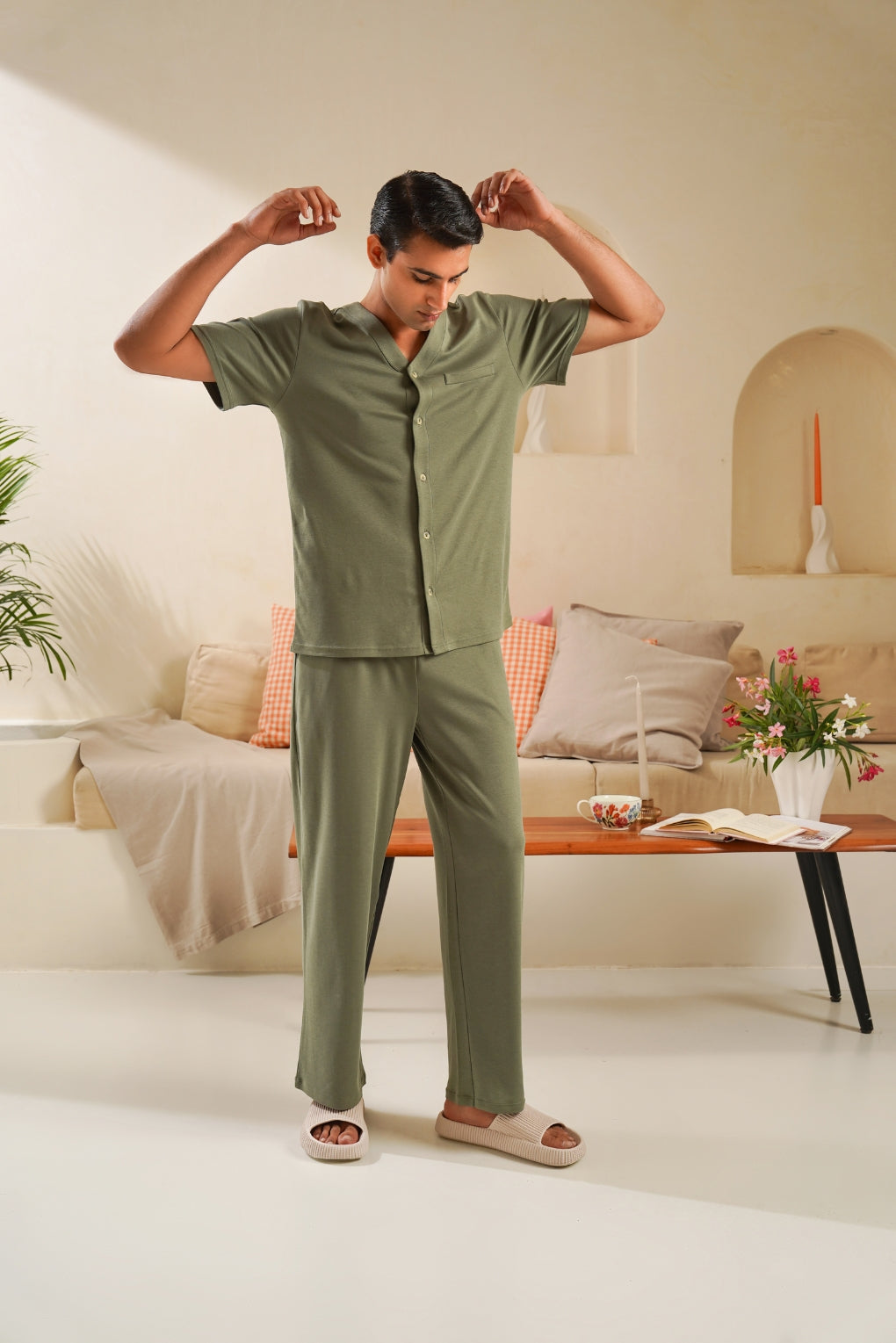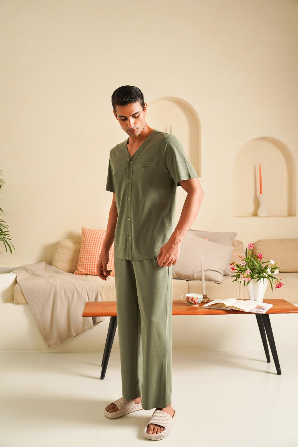 Designed for effortless elegance, the Lunora Pyjama Co-ord Set redefines night time sophistication. Crafted from breathable cotton, this set offers a lightweight feel for ultimate comfort. The classic button-up shirt, adorned with refined piping details and a relaxed fit, exudes timeless appeal. Complementing it, the sleek pyjama pants feature a straight-leg silhouette for an effortless drape. A soft waistband, fine piping accents, and deep pockets enhance both comfort and functionality. Perfect for cozy nights and unhurried mornings, this co-ord set is where comfort meets understated luxury.