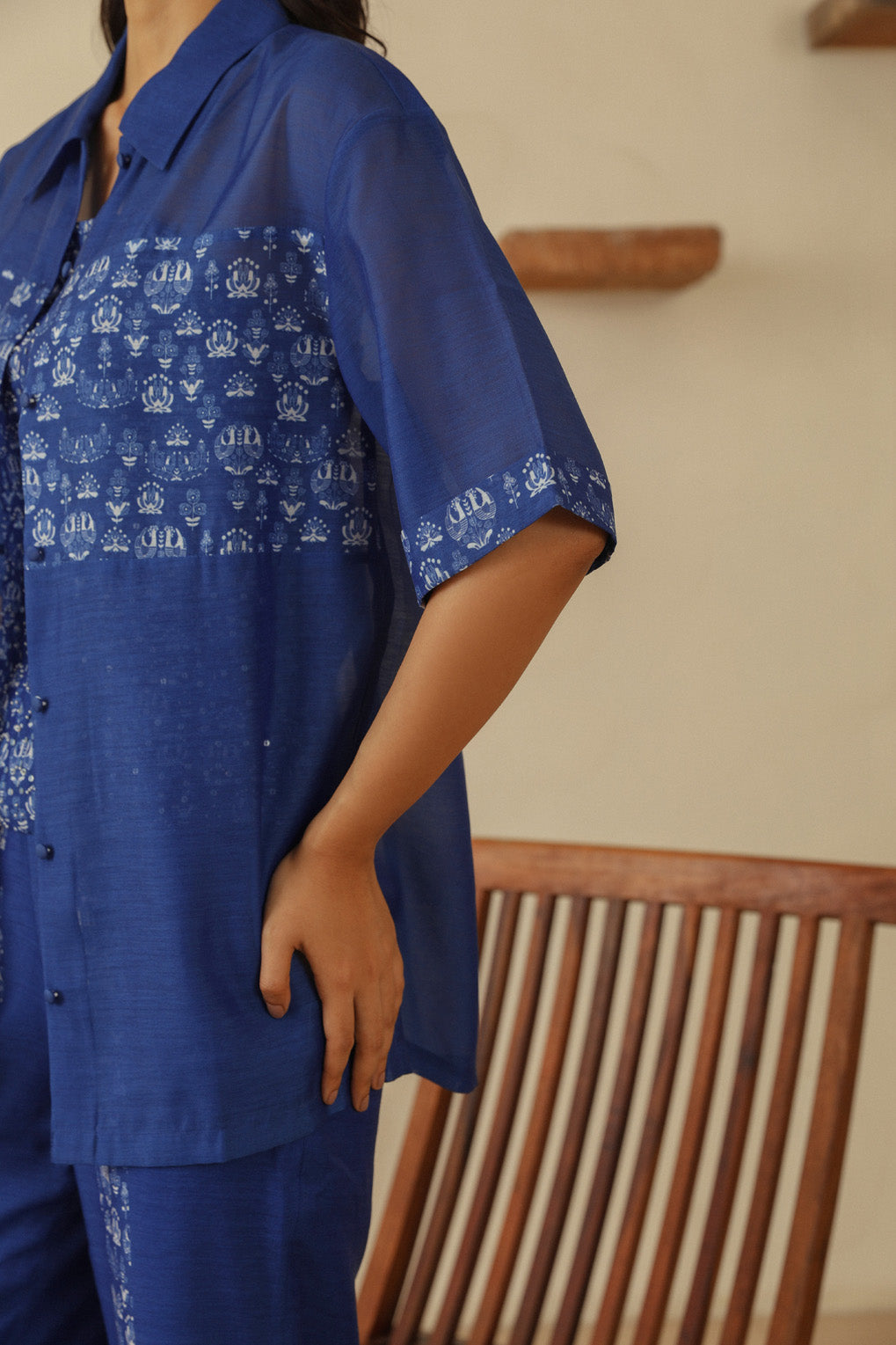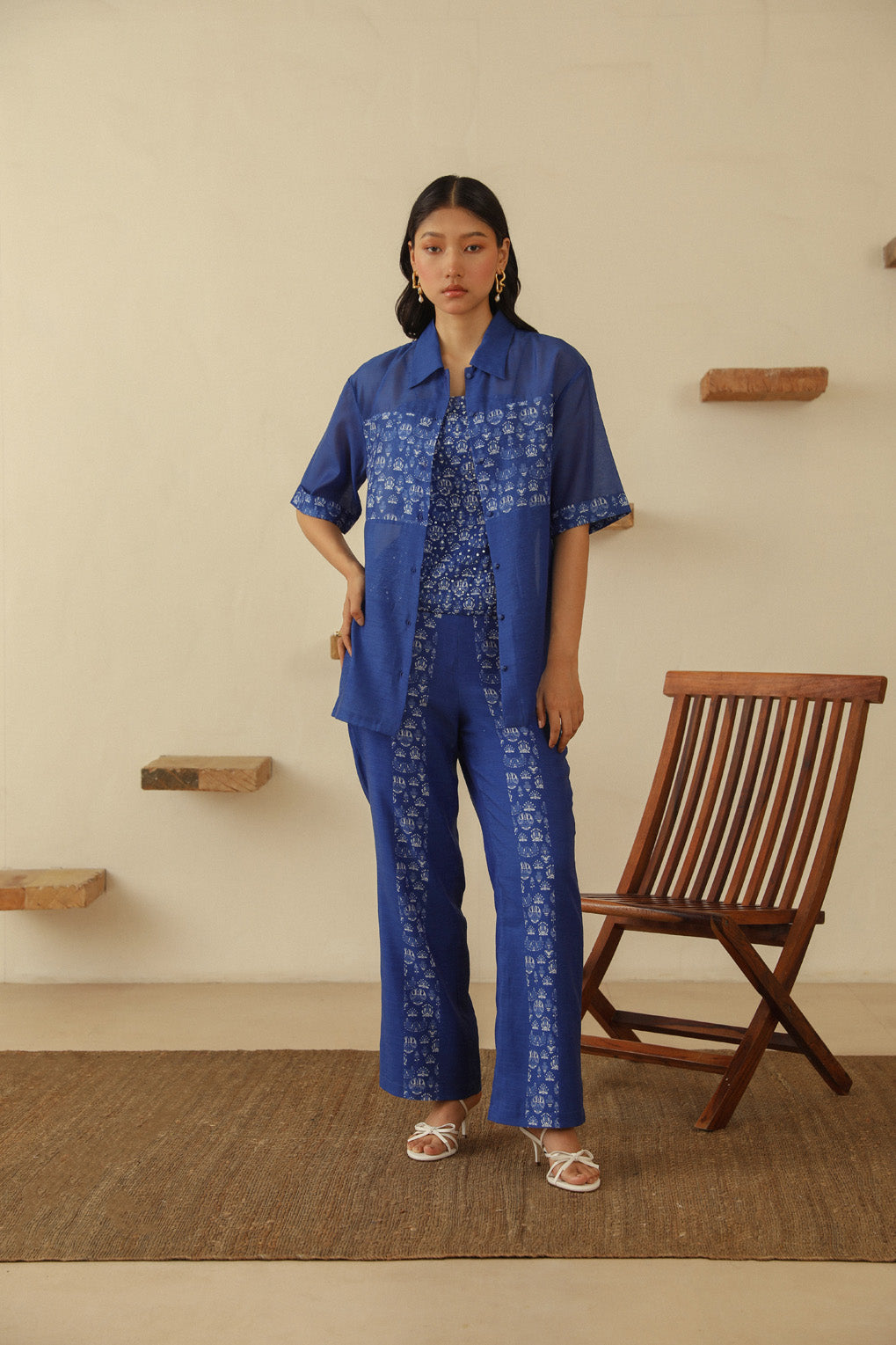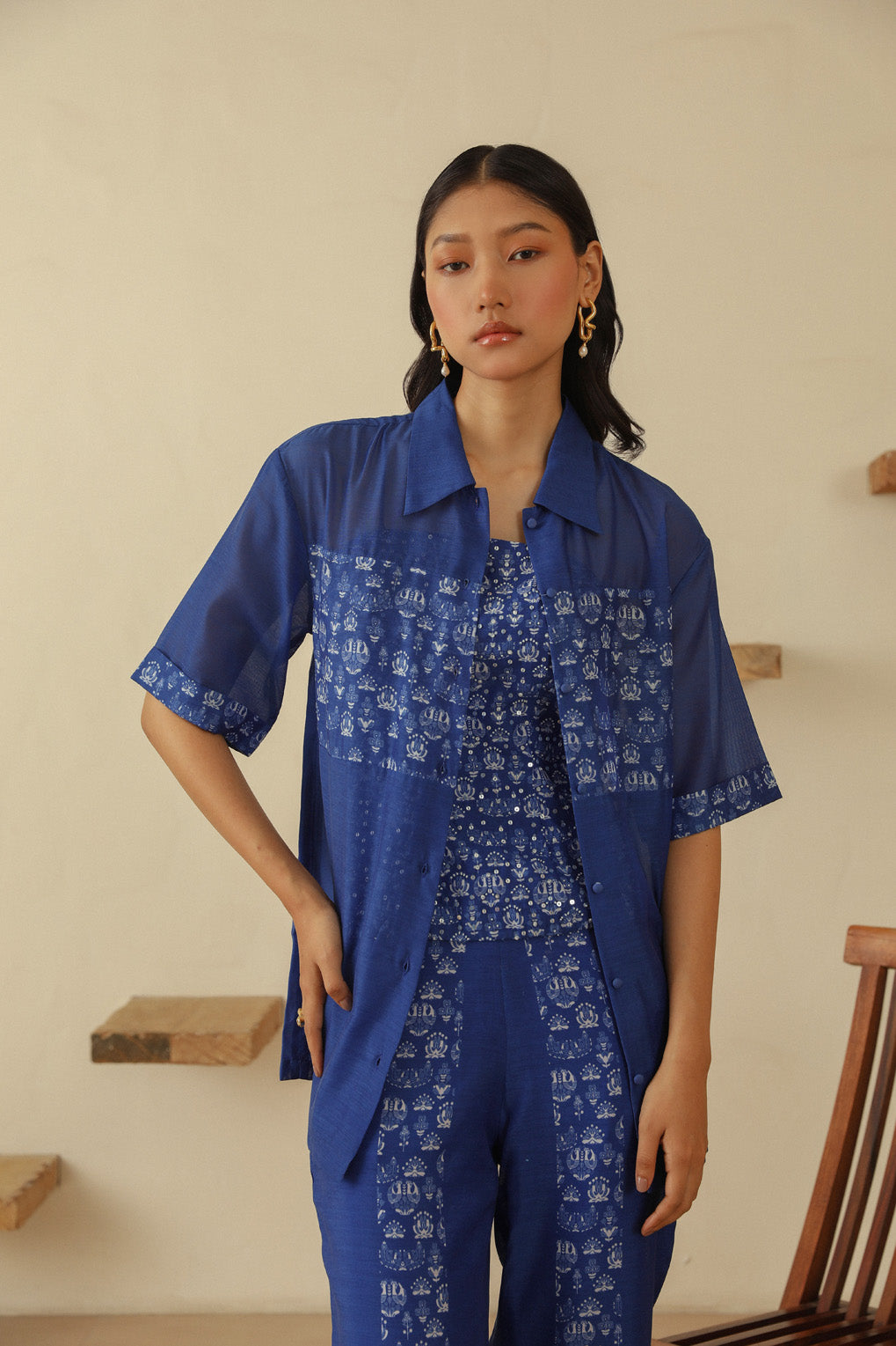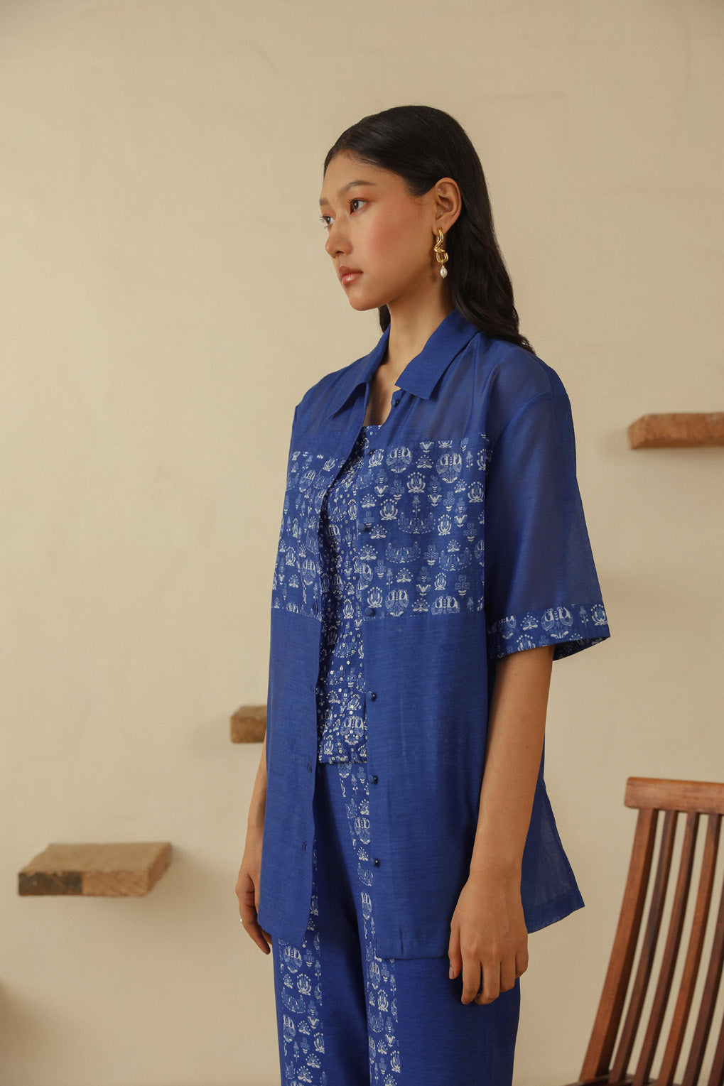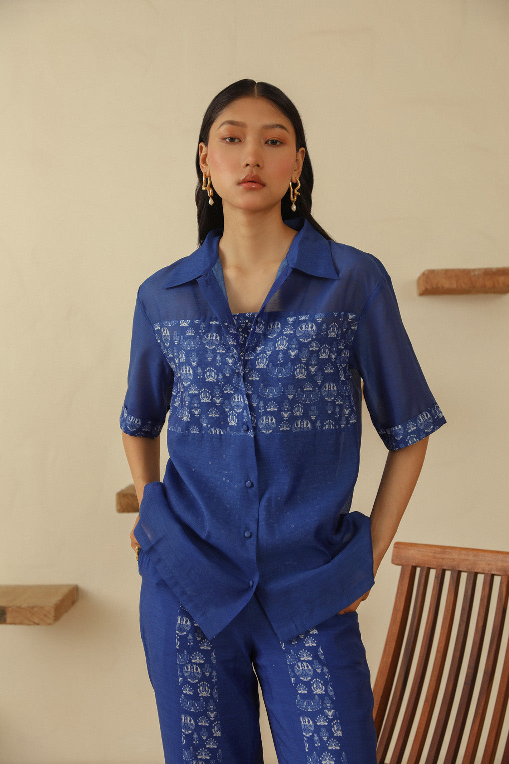 1. Pair this chanderi shirt with our Mayuri tank and Printed Pants.
