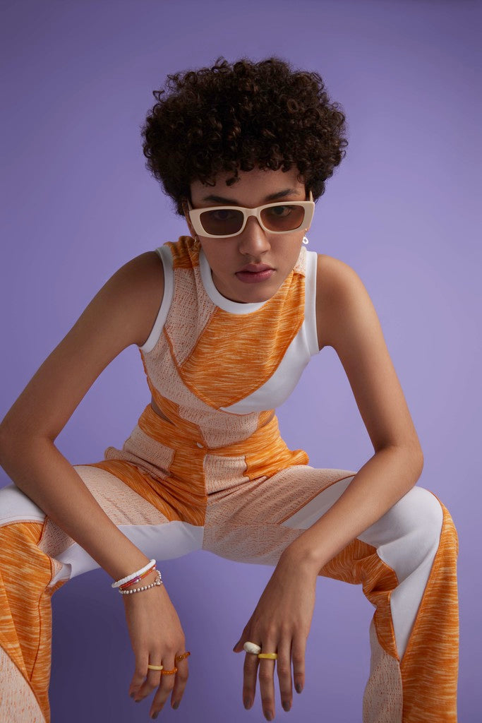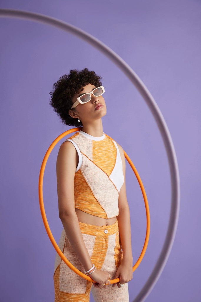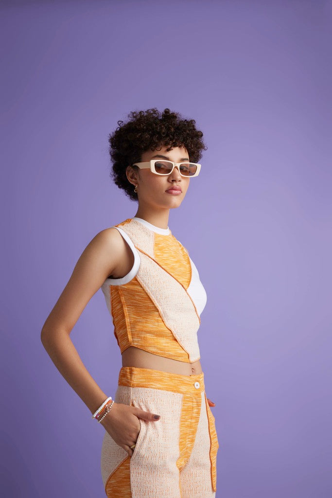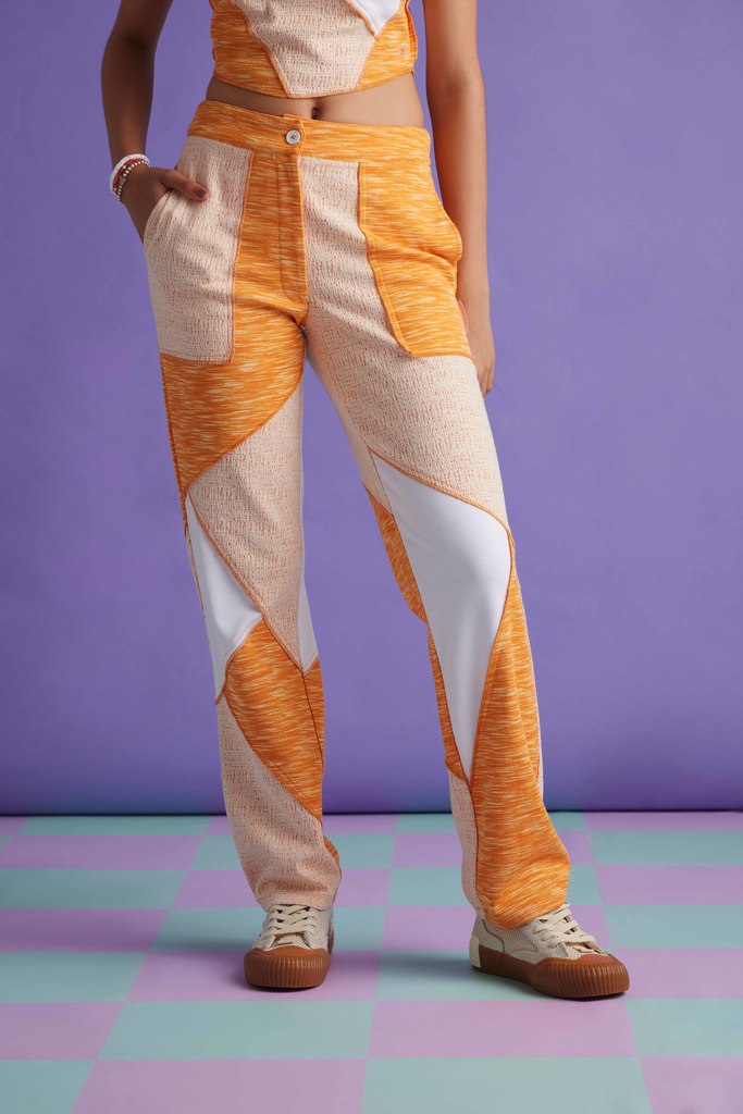 Color: Orange and White Fit: Straight fit pants with adjustible waist