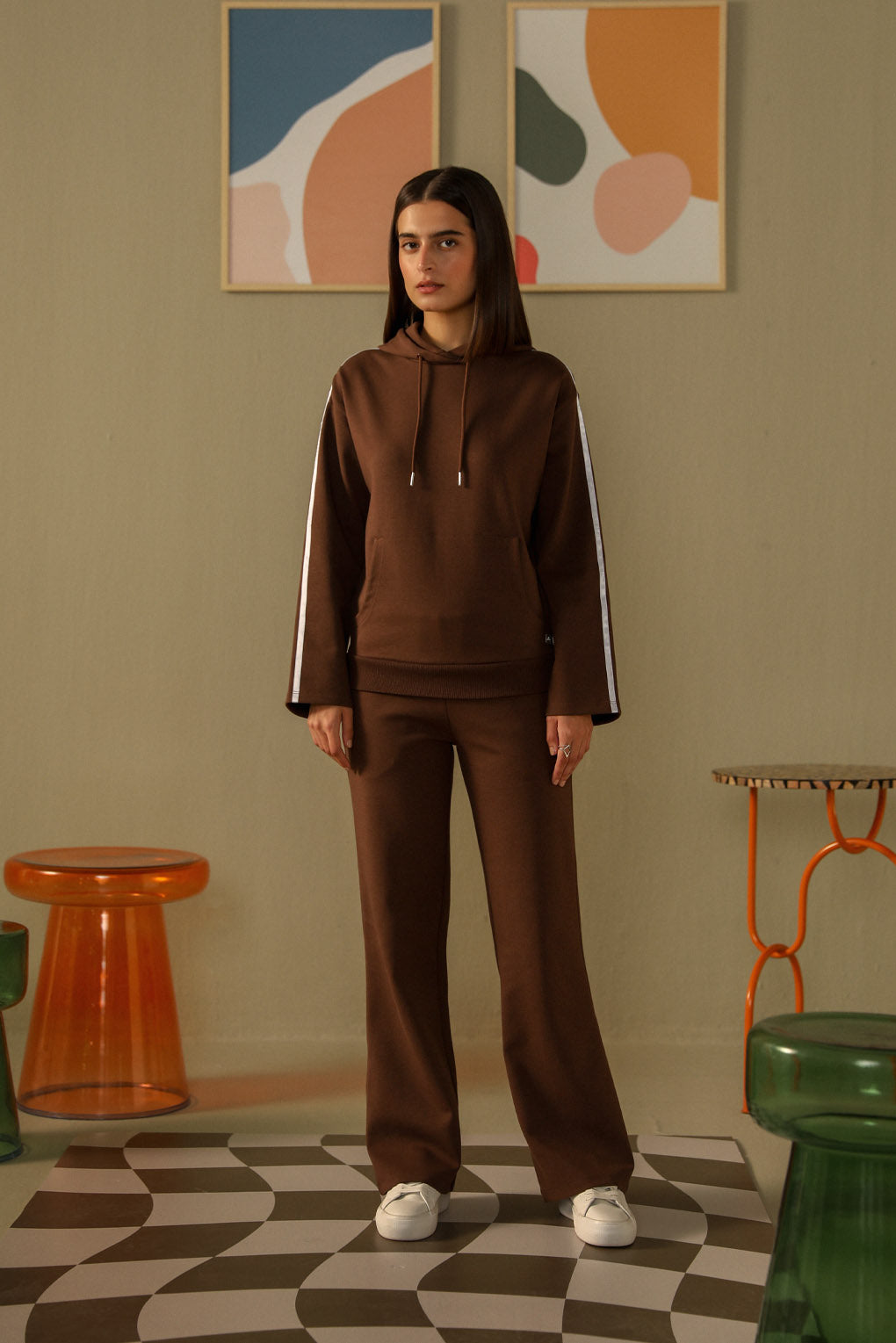 Stay stylish and comfortable with our Mocha Warmth Co-Ord Set, crafted for those who appreciate a perfect blend of fashion and functionality. The hoodie features A-line sleeves that offer a relaxed fit and a flattering silhouette, making it ideal for layering or wearing solo. Paired with bootcut pants designed to elongate the legs, this set is as versatile as it is chic, making it a go-to addition for any wardrobe.