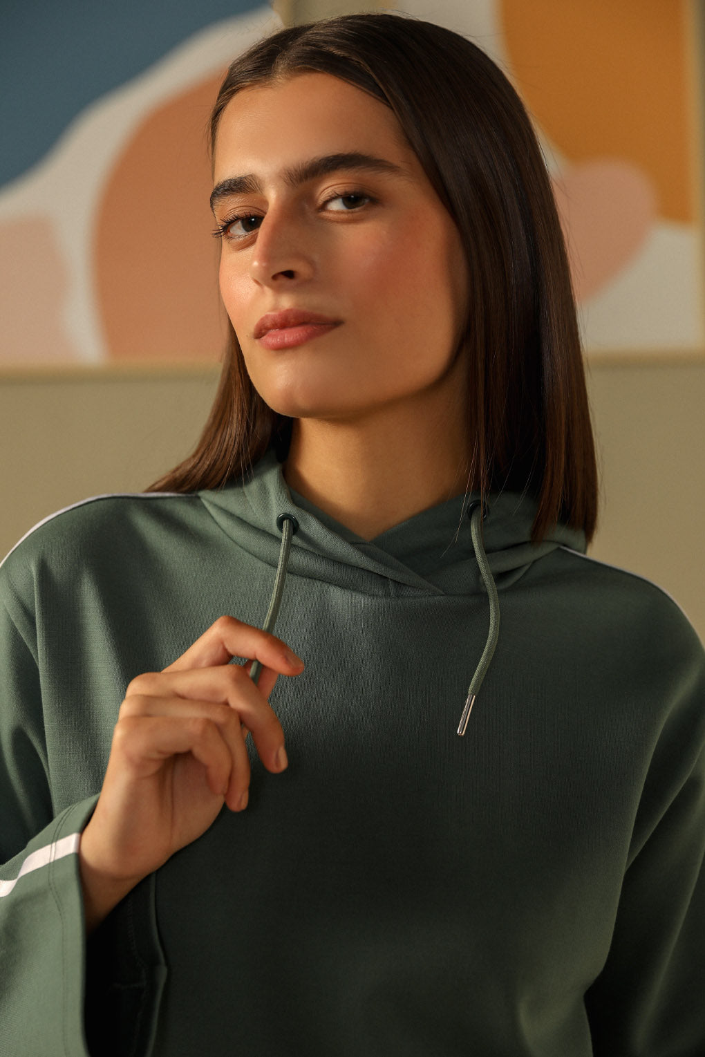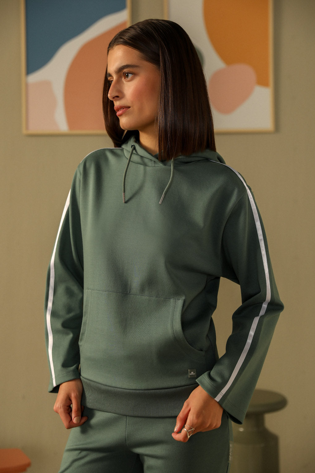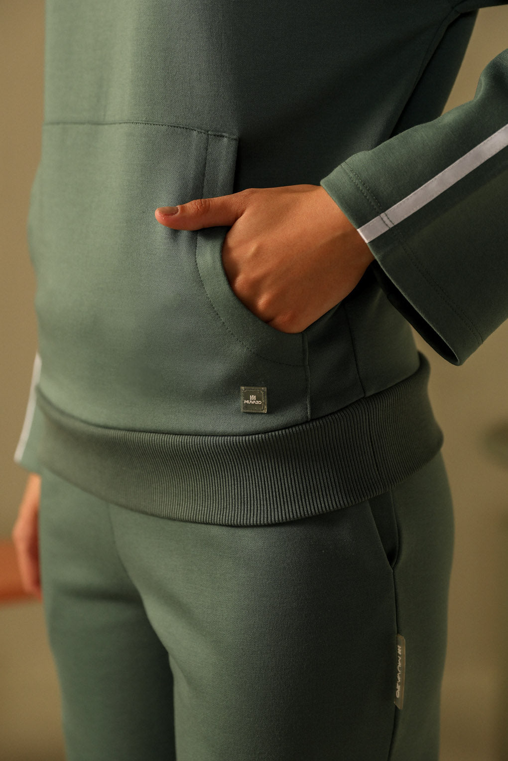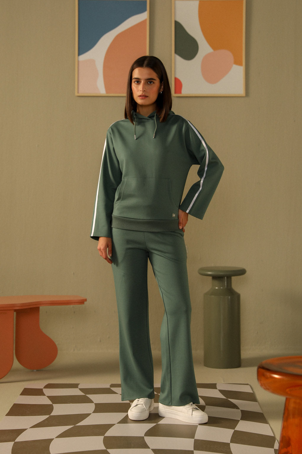 Stay stylish and comfortable with our Mossy Warmth Co-Ord Set, crafted for those who appreciate a seamless blend of fashion and functionality. The hoodie features A-line sleeves that provide a relaxed fit and a flattering silhouette, perfect for layering or wearing solo. Paired with bootcut pants designed to elongate the legs, this set makes a versatile and chic addition to your wardrobe.