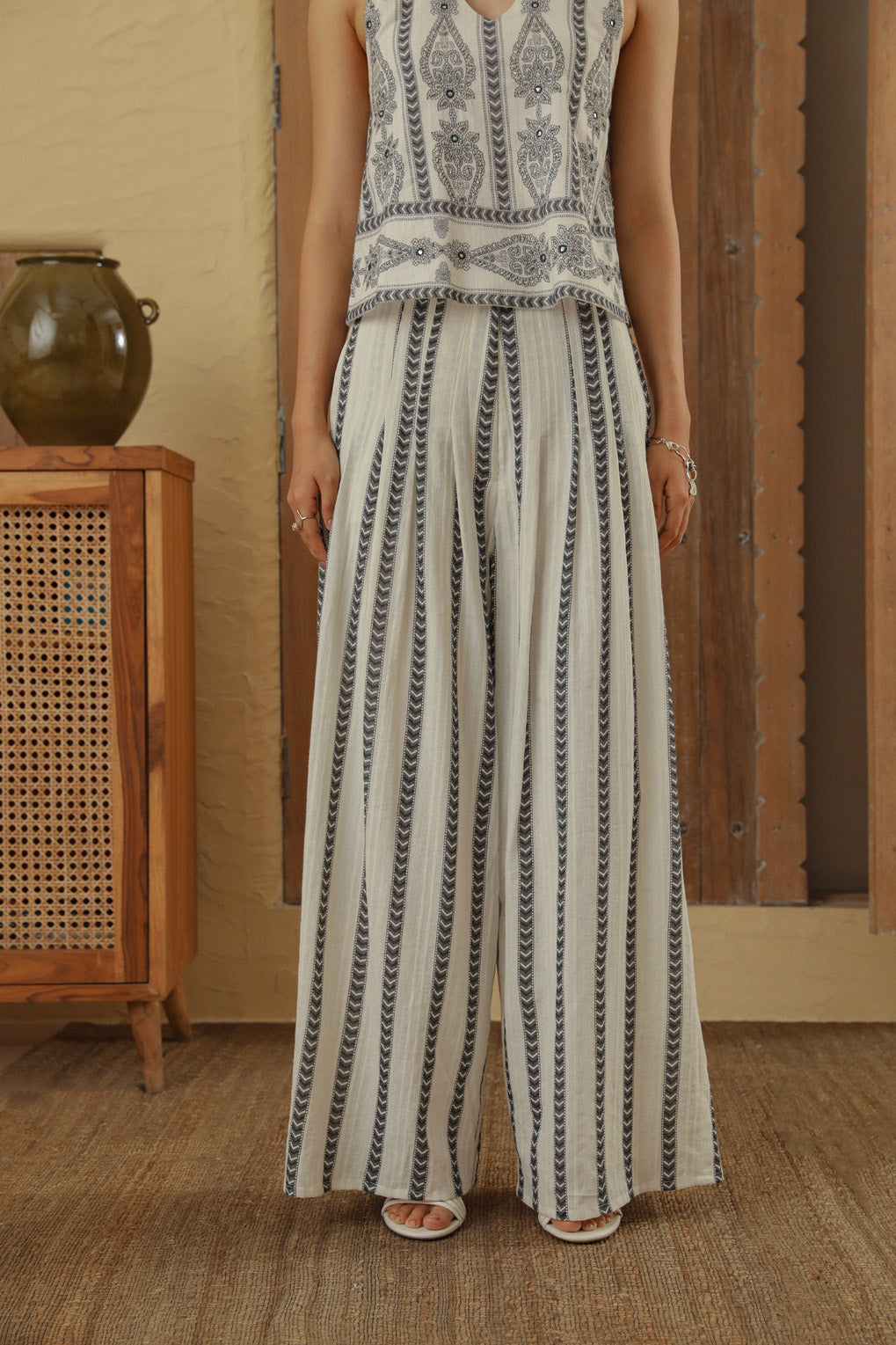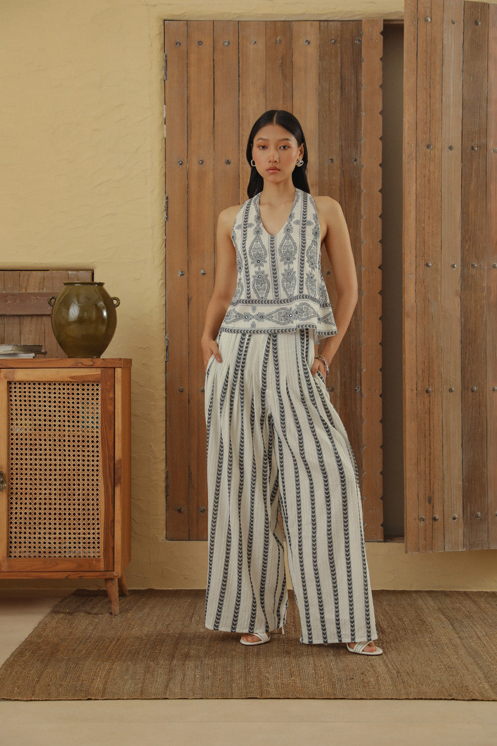 1. Pair the pants with our elegant paisley fusion halter neck top and heels for a polished, formal appearance.