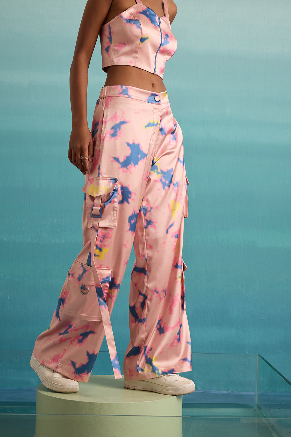 Introducing our vibrant and luxurious women's Psychedelic Splash Co-ord Set crafted from sumptuous satin fabric adorned with a mesmerizing tie-dye splash print. This set exudes elegance with a contemporary twist, offering a fusion of premium quality and eye-catching design. The shirt, stunning bralette, and must-have straight-fit pants are all crafted from luxurious satin fabric with captivating tie-dye splash prints, providing a sophisticated yet trendy ensemble. Elevate your style and make a statement with this coordinated set. Perfect for those seeking to stand out with chic sophistication, this Co-ord Set is sure to become a wardrobe favorite.