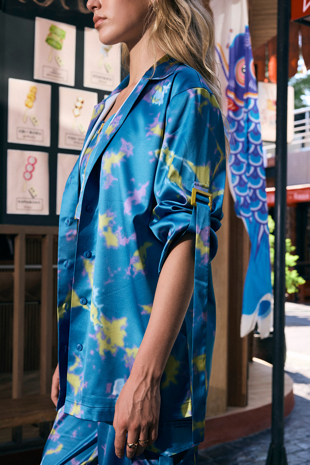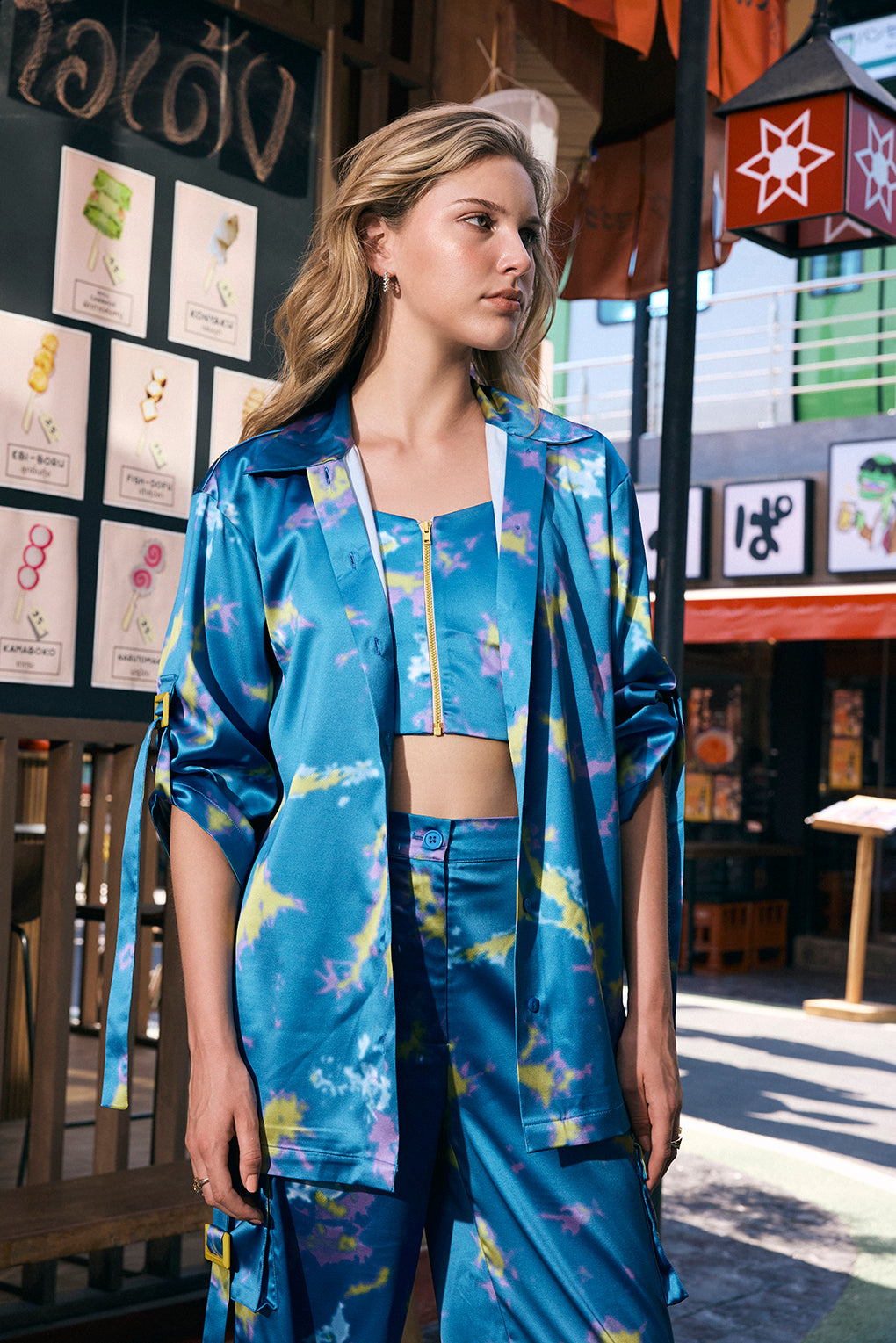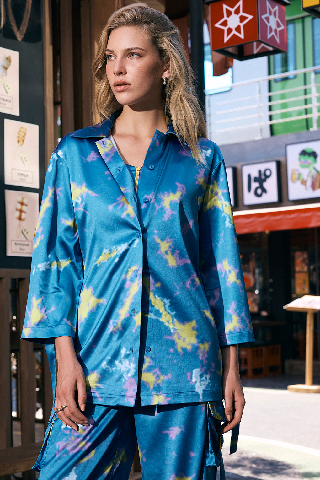 Introducing our vibrant and luxurious women's Psychedelic Splash Co-ord Set crafted from sumptuous satin fabric adorned with a mesmerizing tie-dye splash print. This set exudes elegance with a contemporary twist, offering a fusion of premium quality and eye-catching design. The shirt, stunning bralette, and must-have straight-fit pants are all crafted from luxurious satin fabric with captivating tie-dye splash prints, providing a sophisticated yet trendy ensemble. Elevate your style and make a statement with this coordinated set. Perfect for those seeking to stand out with chic sophistication, this Co-ord Set is sure to become a wardrobe favorite.