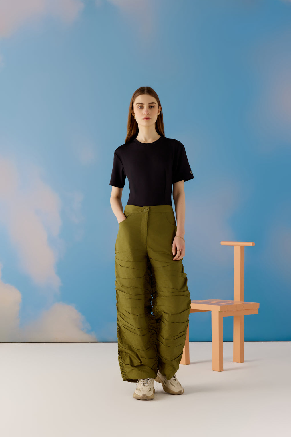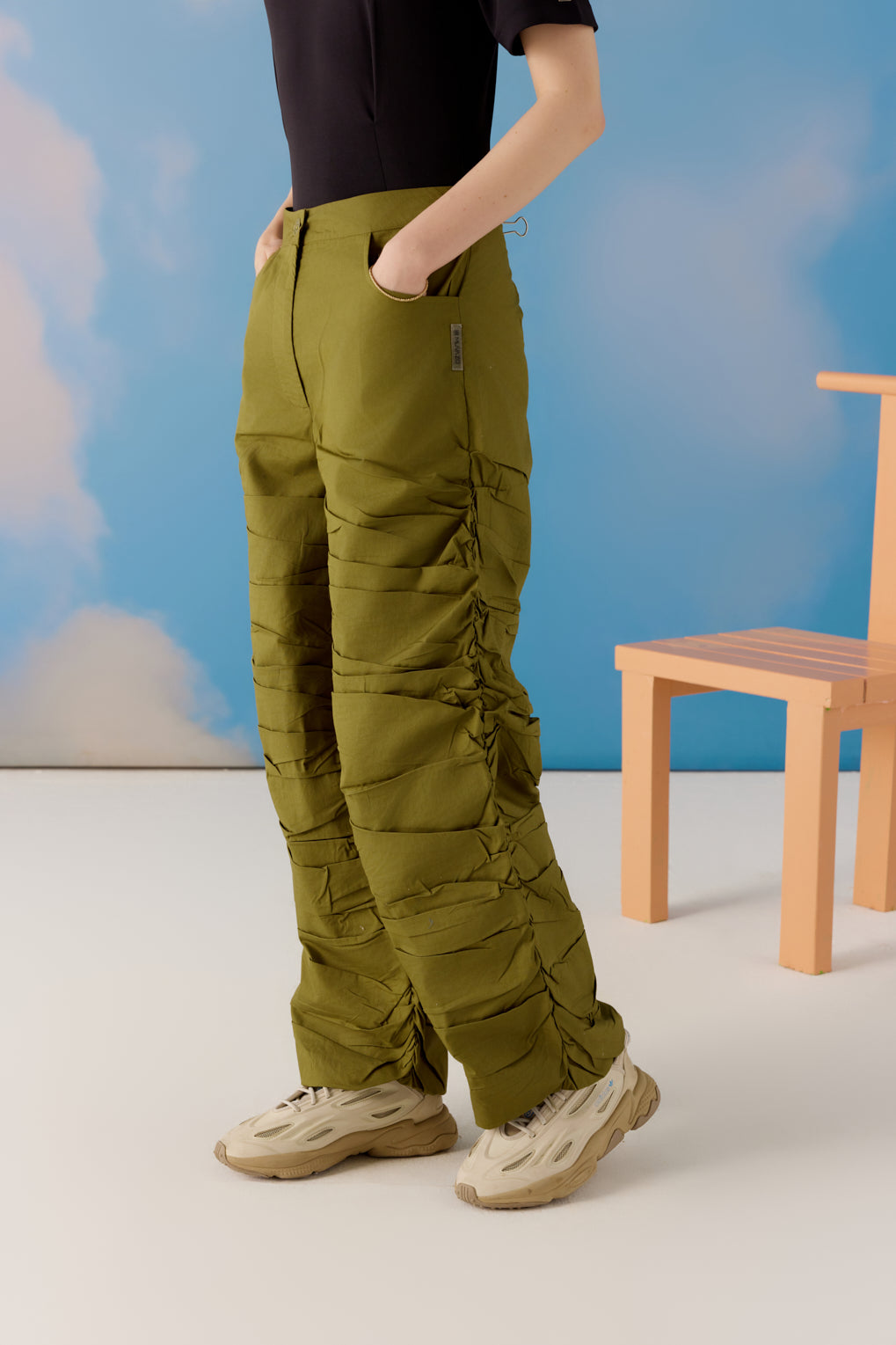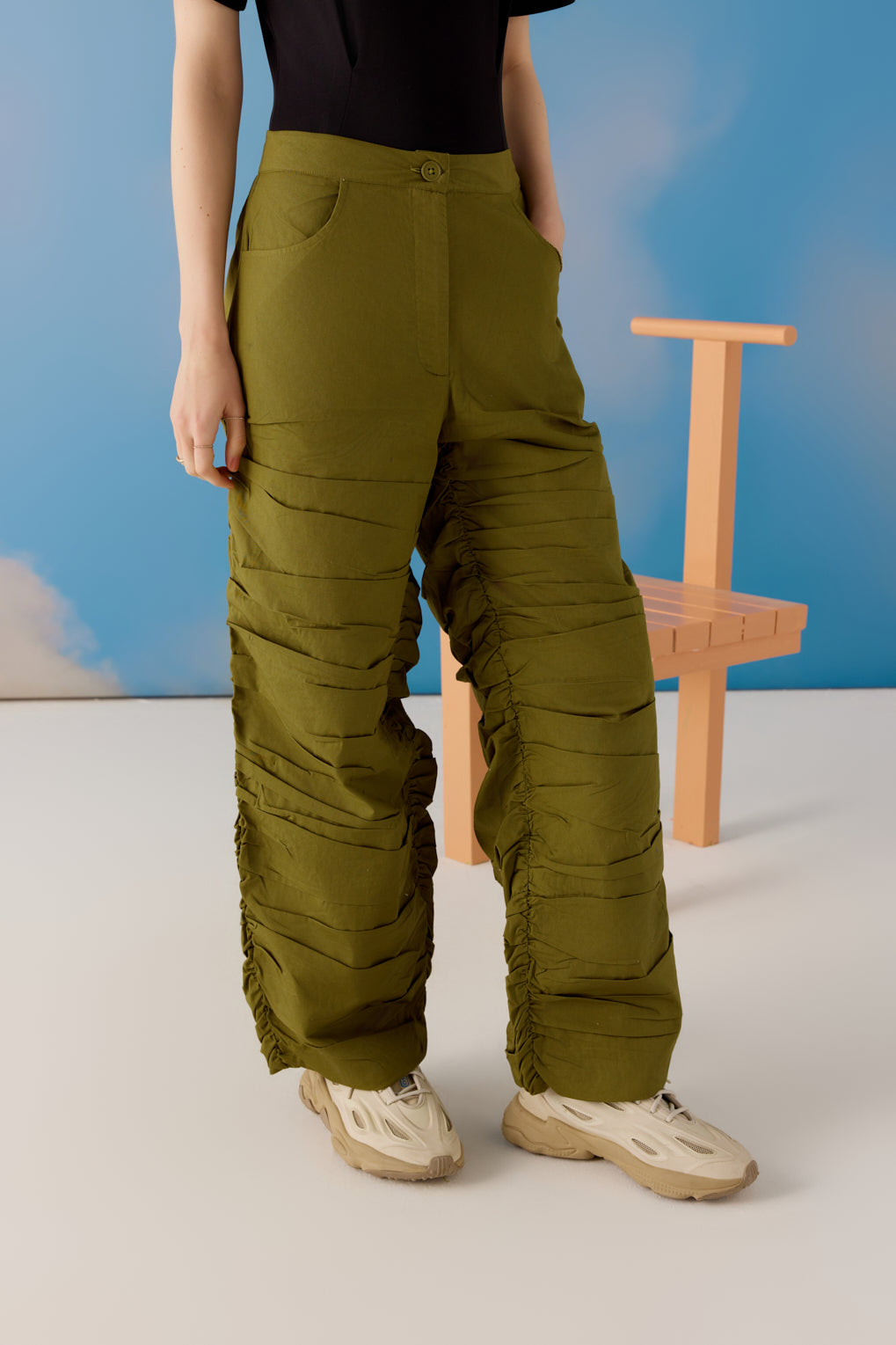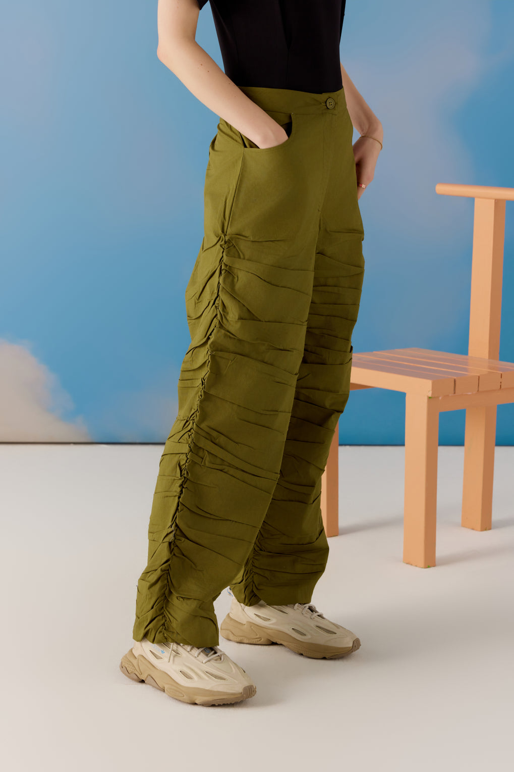Introducing our latest addition to your wardrobe essentials - the Quirky Ruched Pants. Meticulously crafted with attention to detail, these pants boast unique ruched detailing that brings a touch of sophistication and flair to your ensemble. Strategically placed along the waistband or legs, the ruched accents create subtle gathers and folds that accentuate your figure, elevating the overall look of the pants. Designed for both style and comfort, these pants are sure to become a staple piece in your wardrobe.