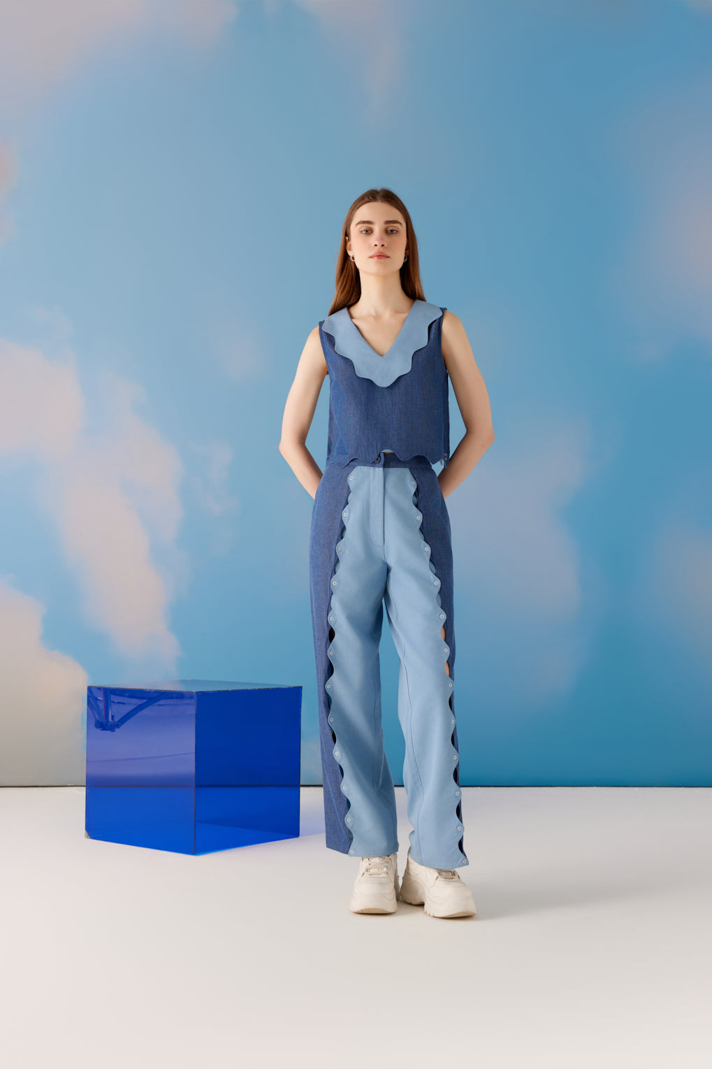 Elevate your style with our S'3 Seafoam Splash Swrill Co-ord Set, designed to make a fashion statement. Intricately crafted with delicate scalloped detailing along the neckline and hemline, the scalloped edges add a whimsical touch to both the top and pants, bringing charm and sophistication to your overall look. This co-ord set effortlessly combines style and comfort, perfect for creating versatile and chic ensembles. Embrace feminine elegance and the charm of colour-blocking with this must-have set, perfect for any occasion.