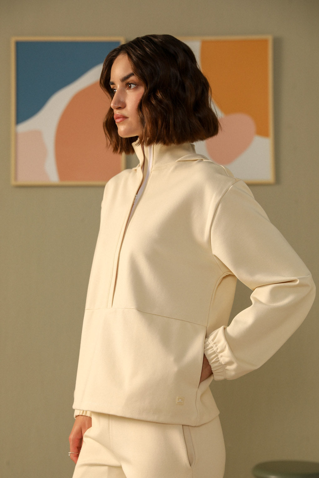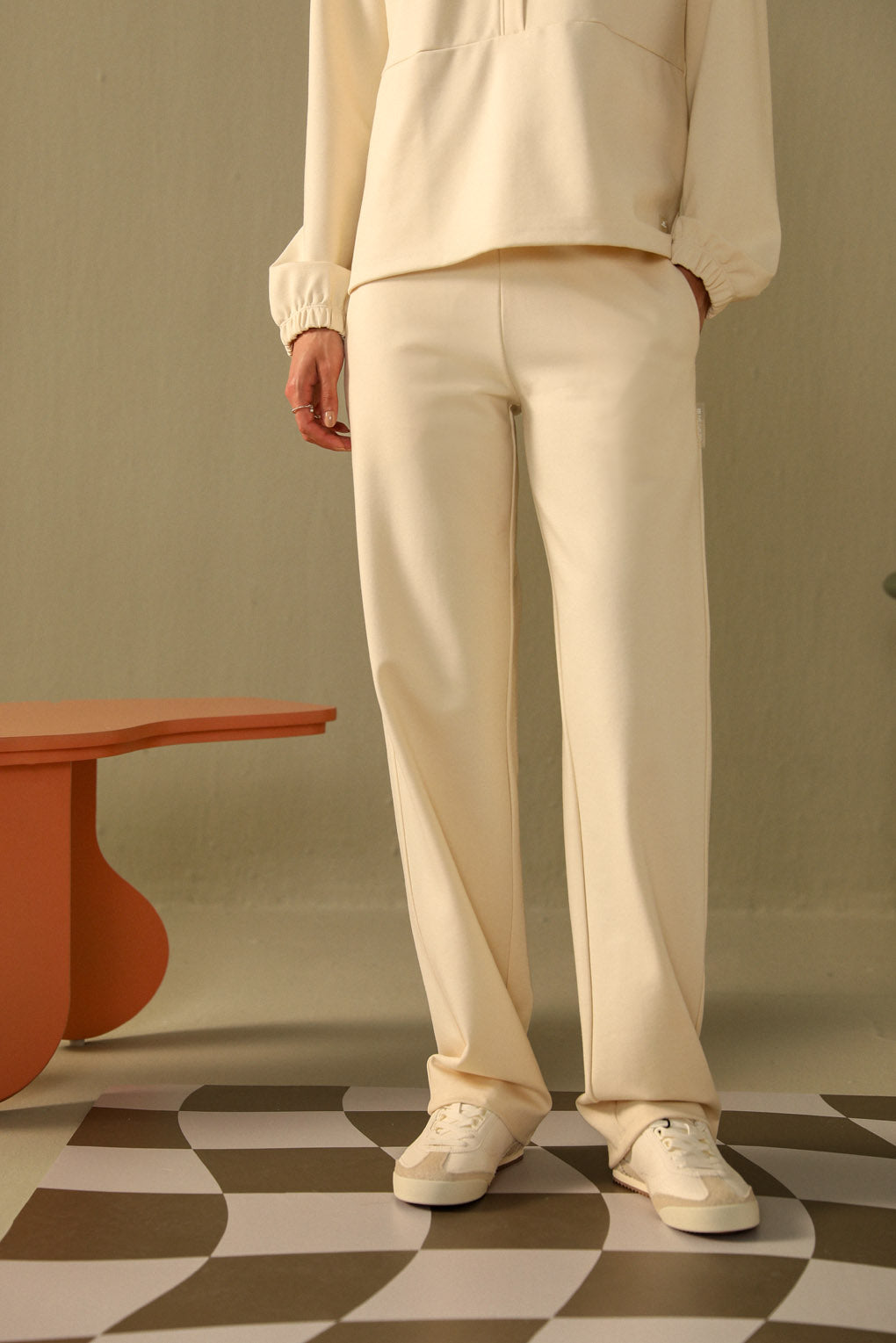 Embrace effortless comfort and style with the Snug Threads Co-ord Set. The sweat top features a high neck in soft ribbed fabric, offering warmth and a snug fit, with a trendy hoodie detail. Its A-line silhouette drapes gracefully for a relaxed yet stylish look. The straight-leg pants, with a ribbed waistband, provide comfort and a perfect fit. Crafted from cozy, high-quality fabric, this co-ord set is perfect for lounging or casual outings, blending comfort with modern style.