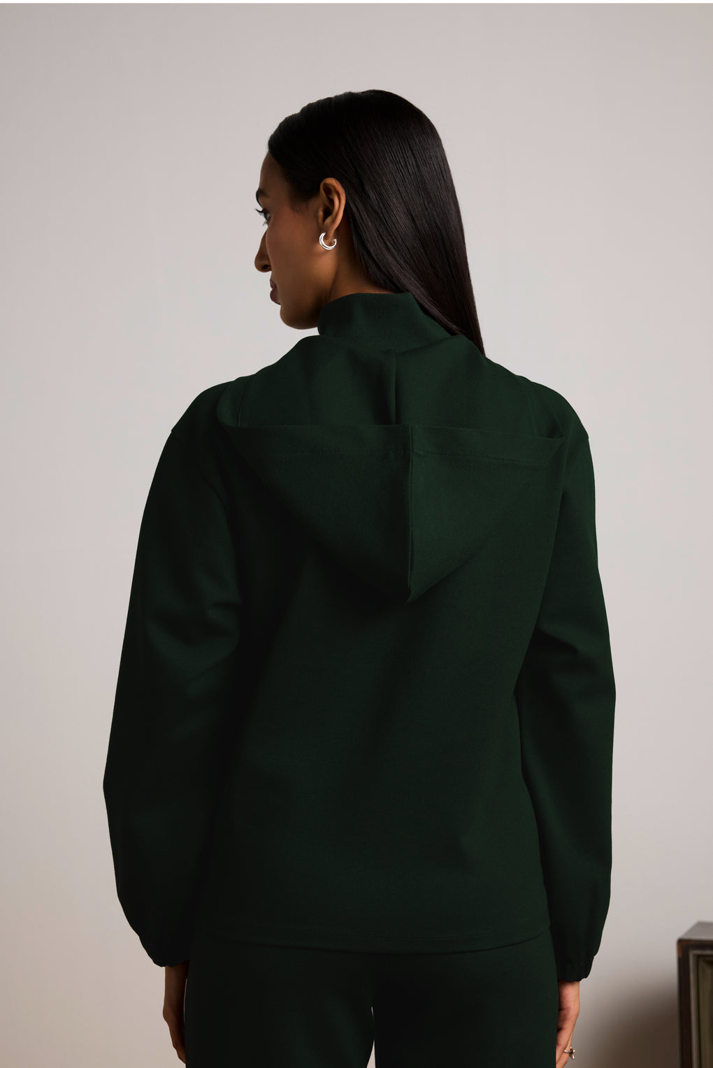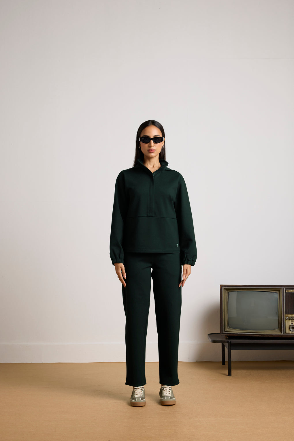 Embrace effortless comfort and style with the Snug Threads Co-ord Set. The sweat top features a high neck in soft ribbed fabric, offering warmth and a snug fit, with a trendy hoodie detail. Its A-line silhouette drapes gracefully for a relaxed yet stylish look. The straight-leg pants, with a ribbed waistband, provide comfort and a perfect fit. Crafted from cozy, high-quality fabric, this co-ord set is perfect for lounging or casual outings, blending comfort with modern style.