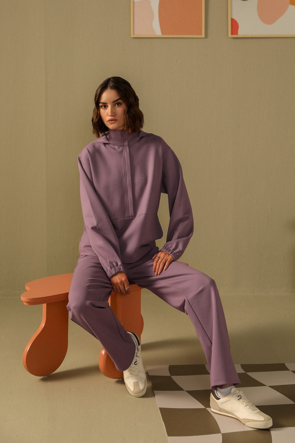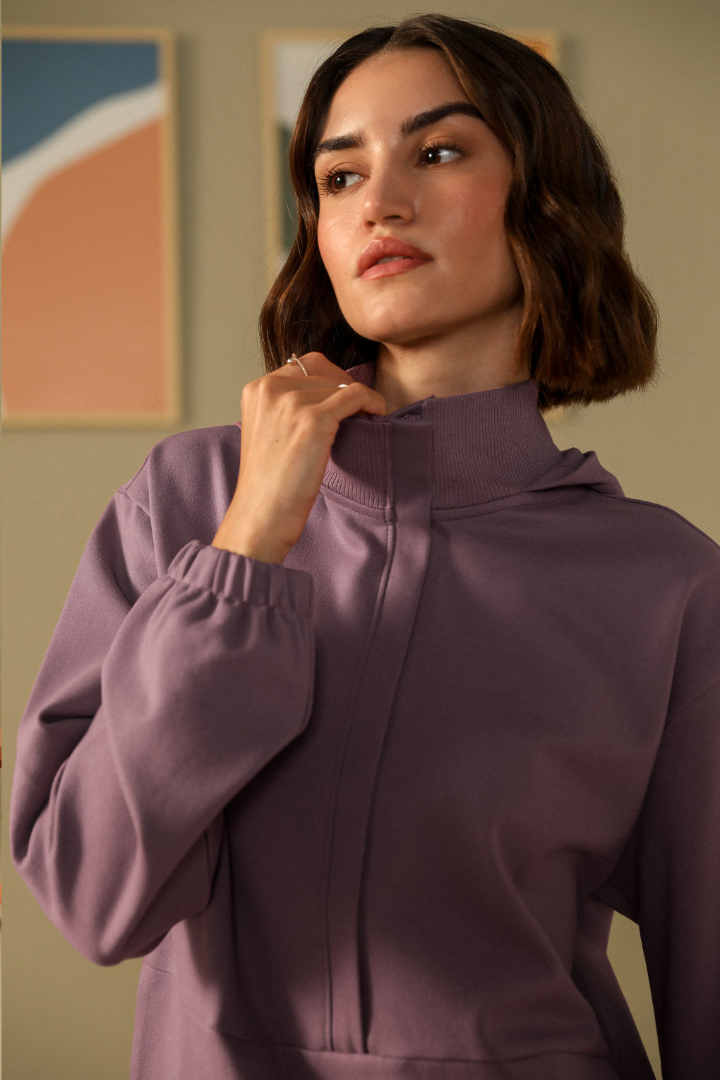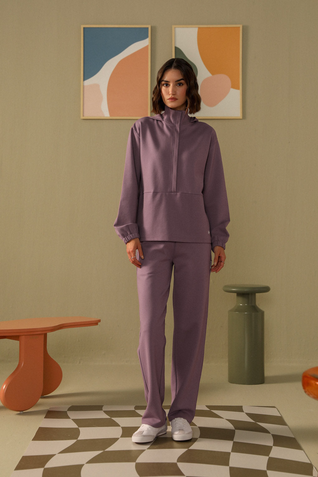 Embrace effortless comfort and style with the Snug Threads Co-ord Set. The sweat top features a high neck in soft ribbed fabric, offering warmth and a snug fit, with a trendy hoodie detail. Its A-line silhouette drapes gracefully for a relaxed yet stylish look. The straight-leg pants, with a ribbed waistband, provide comfort and a perfect fit. Crafted from cozy, high-quality fabric, this co-ord set is perfect for lounging or casual outings, blending comfort with modern style.
