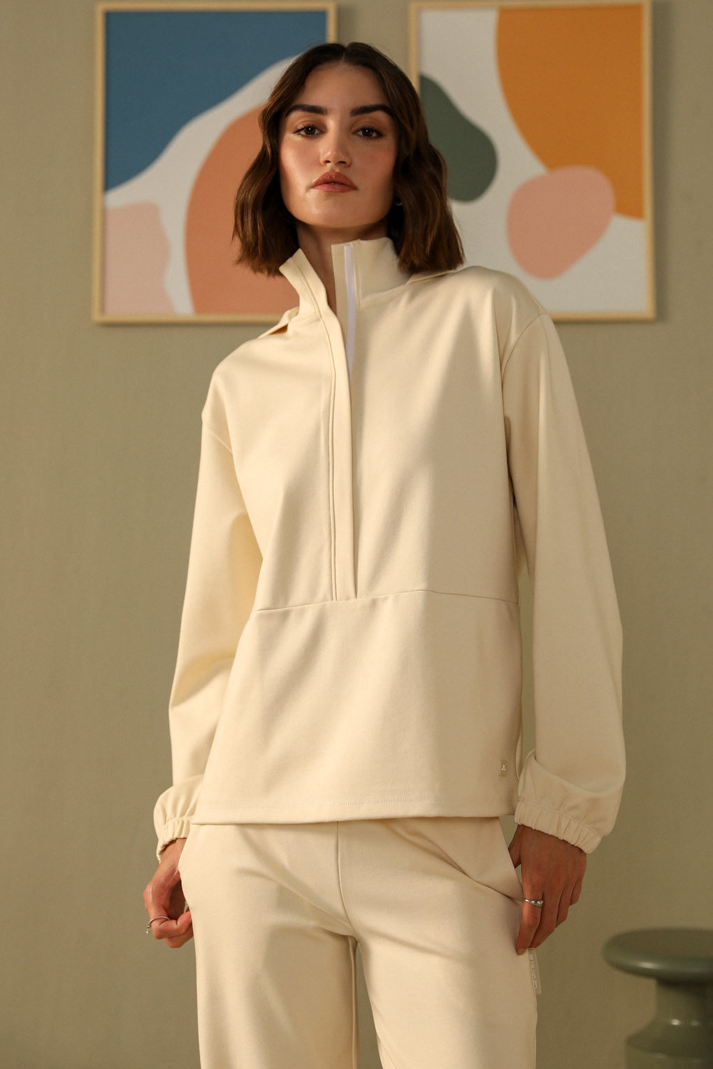 Experience ultimate comfort and style with the Snug Threads Sweat Top. Featuring a high neck crafted from soft ribbed fabric, this top offers warmth and a cozy fit around the neckline. The A-line silhouette provides a flattering, relaxed shape that drapes effortlessly, while the hoodie detail adds a casual, trendy touch. Made from high-quality fabric, this sweat top is perfect for lounging at home or layering over your favourite outfits for a chic, laid-back look. Embrace a blend of comfort and modern style with this versatile wardrobe essential.