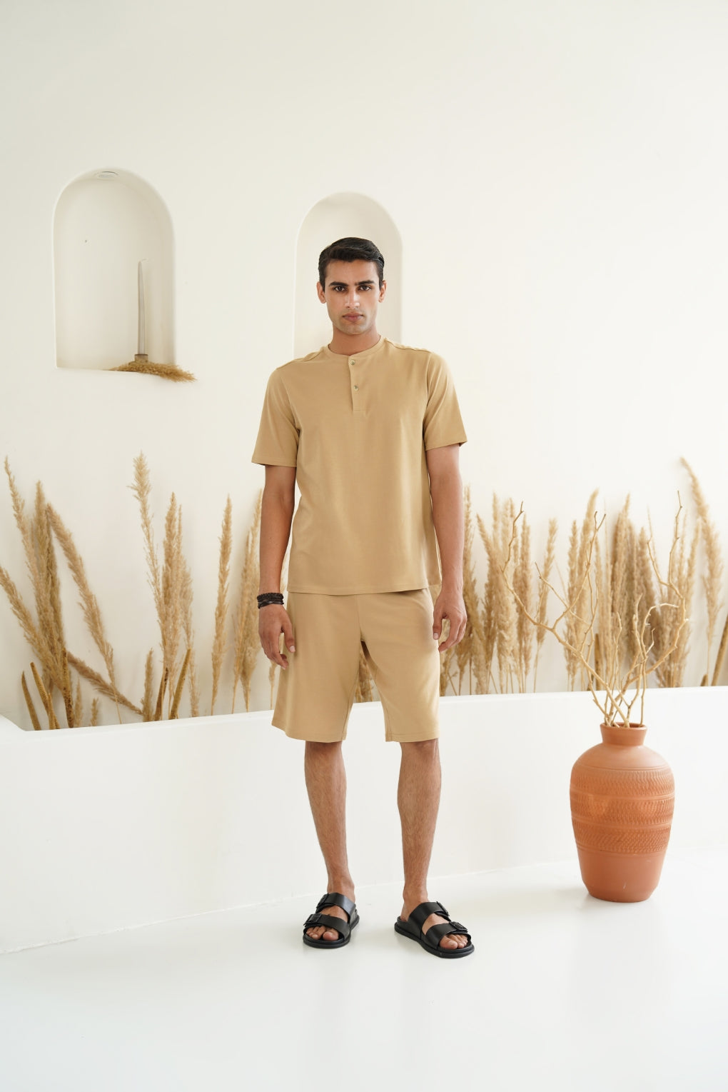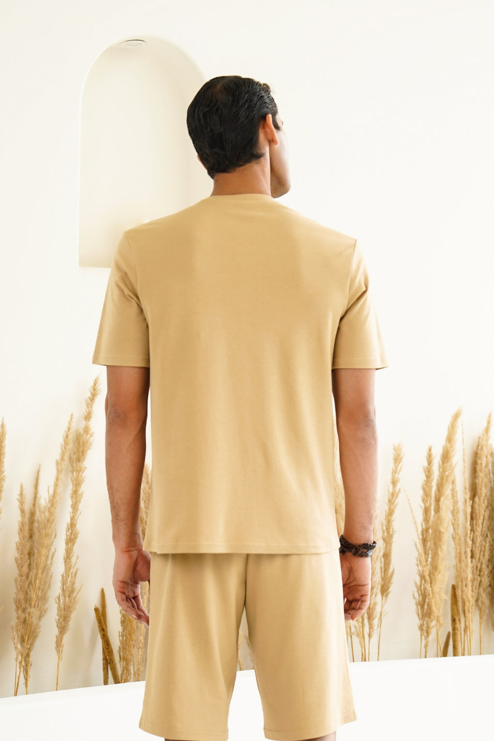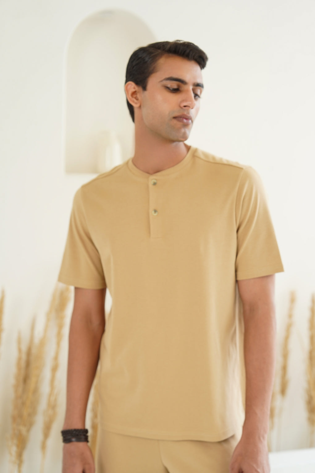 A refined blend of comfort and understated luxury, the Sorrento Knit Tee is crafted from ultra-soft, breathable fabric with a subtle sheen. Featuring a contemporary Henley neckline with minimal button detailing, it offers an effortless, relaxed fit. The fine texture ensures maximum ease, making it the perfect choice for unwinding at home or stepping out in style.