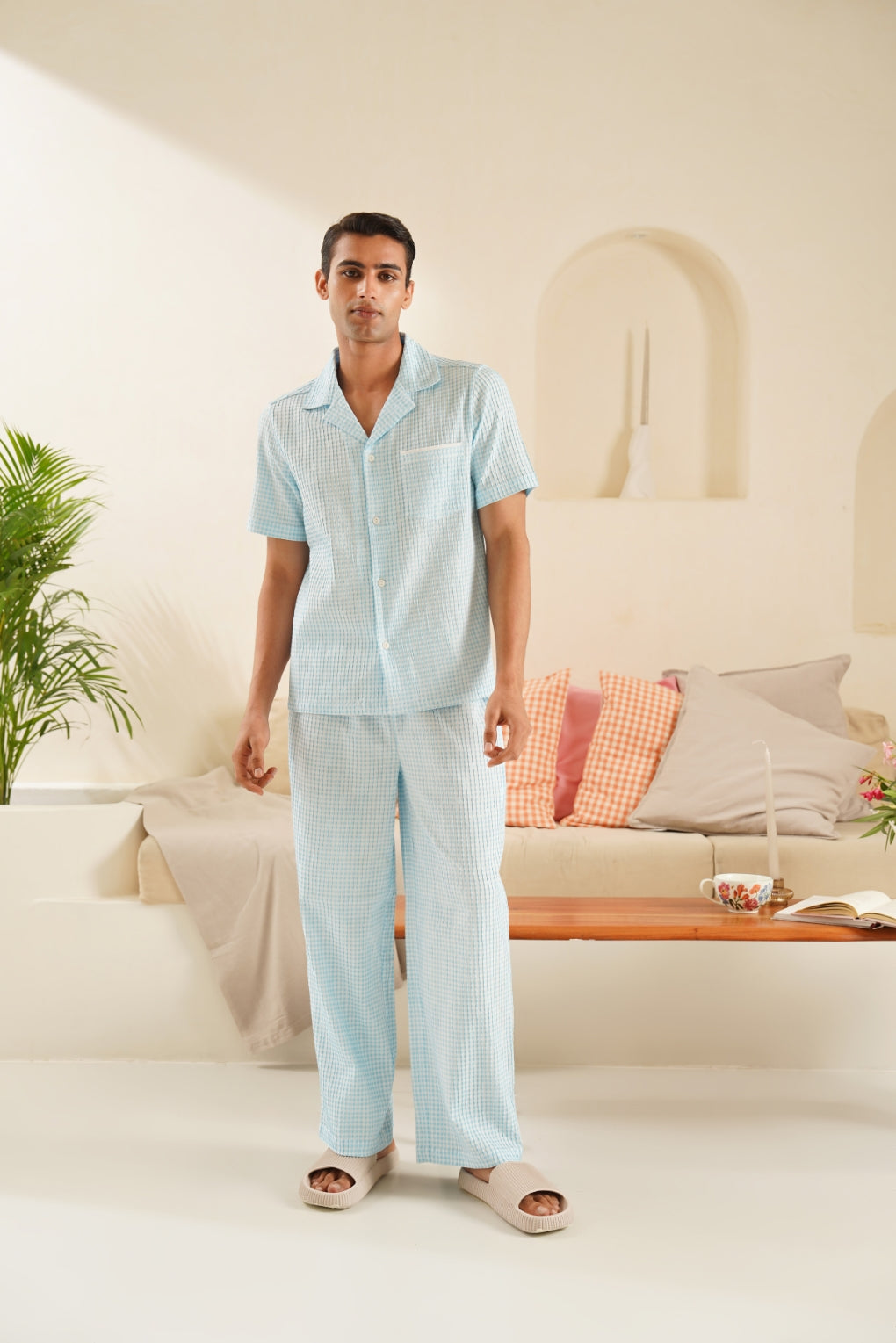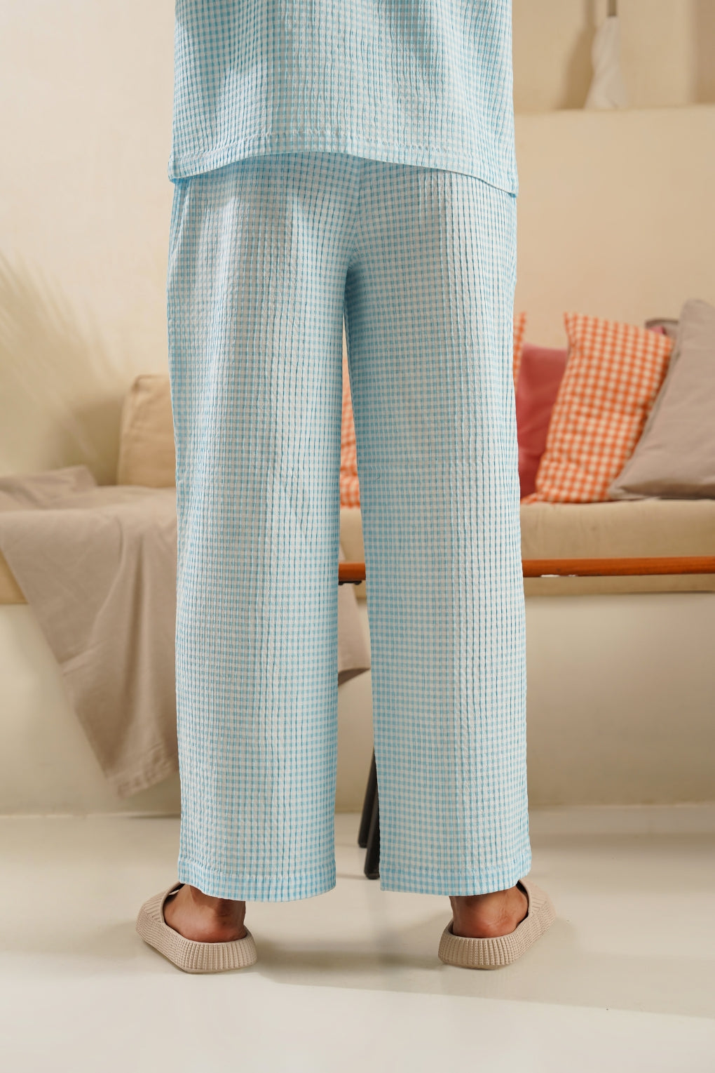 Relax in style with these Spruce Blue Nightwear Lounge Pants. Made from breathable cotton, they feature a relaxed fit and elastic waistband for all-night comfort. The soft sky blue color adds a calming touch, perfect for bedtime or lounging at home. Experience effortless comfort and style with these must-have nightwear pants.