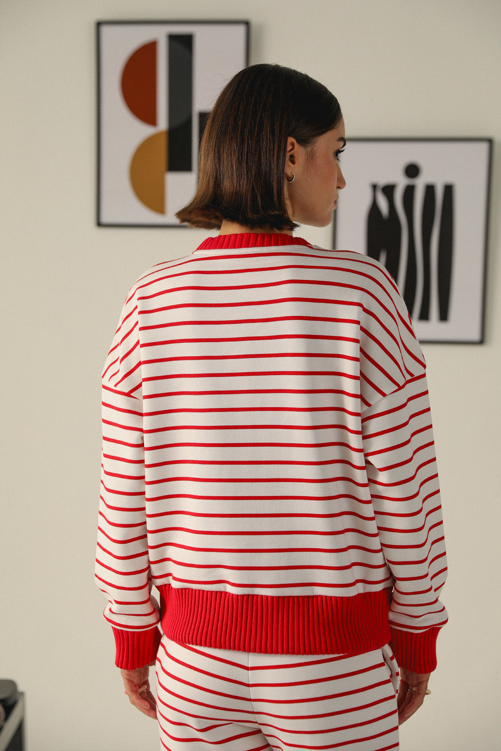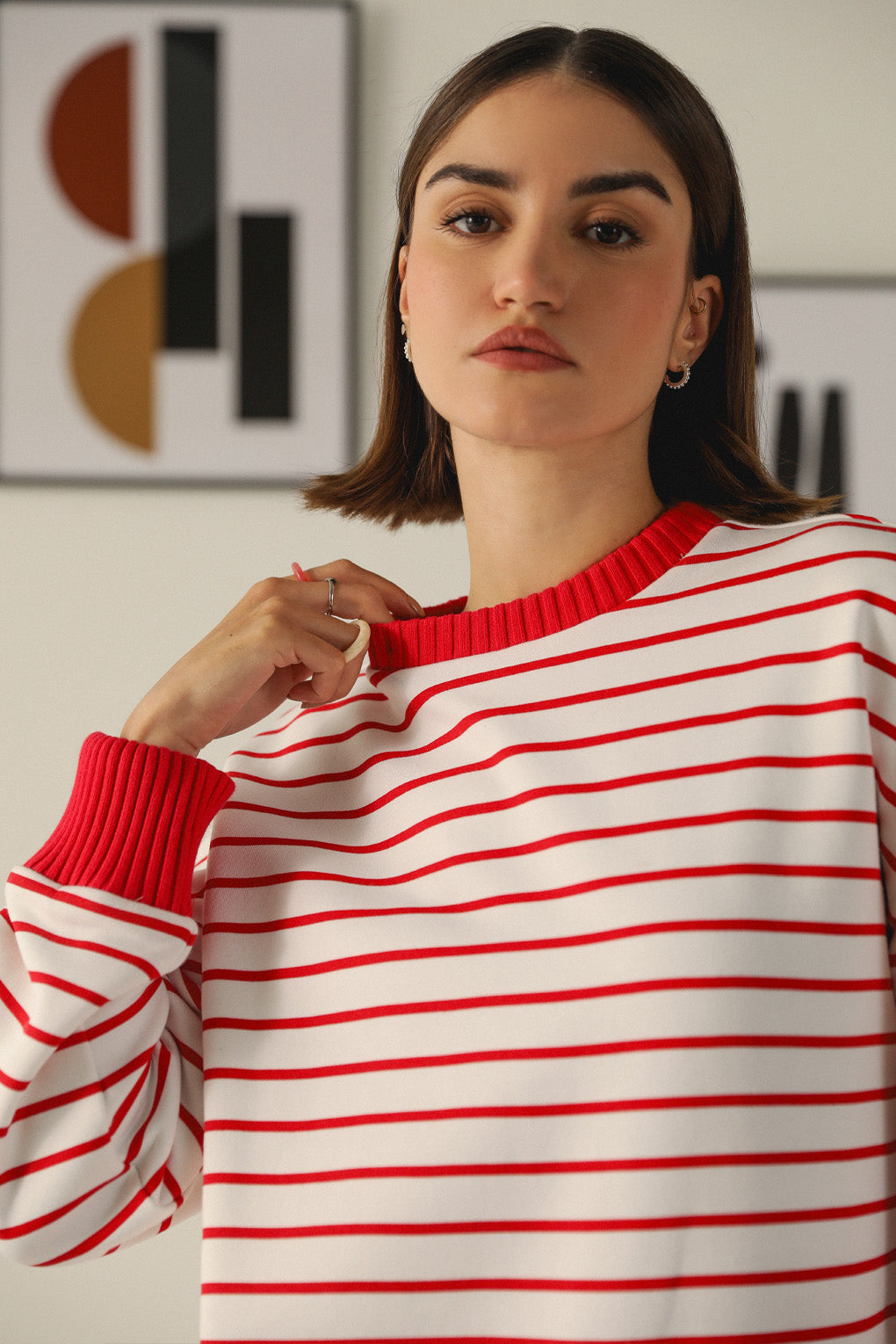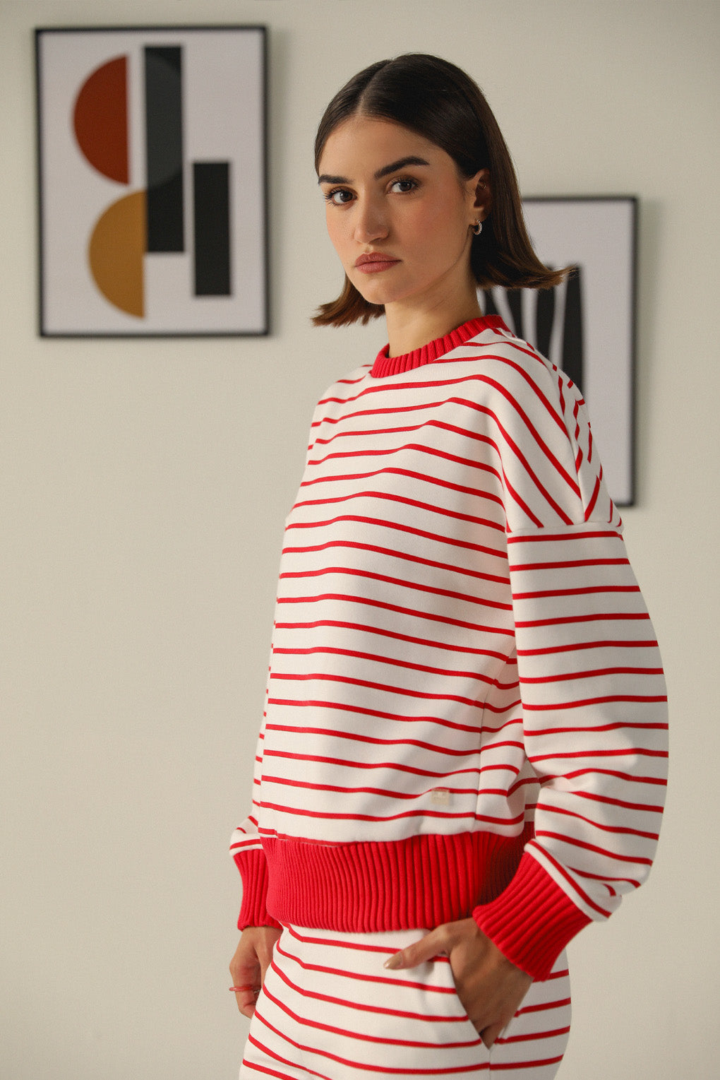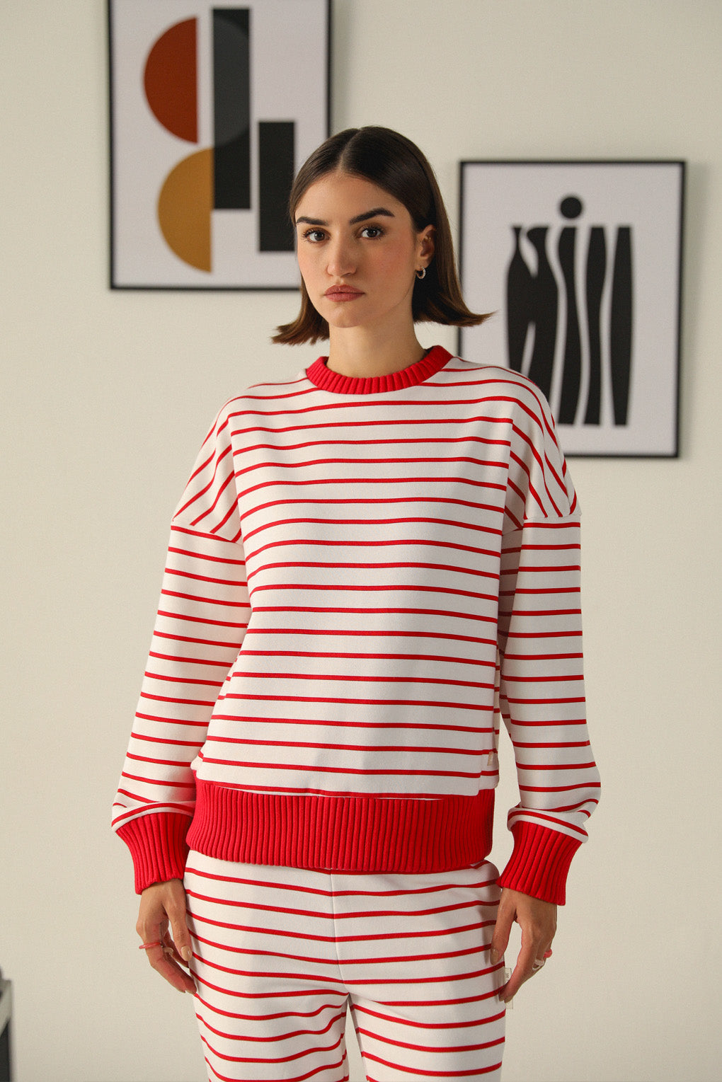 Stay stylish and comfortable with our Warm-Hug Fleece Sweat Top, crafted to elevate your casual wardrobe. Made from soft, yarn-dyed stripe fleece, this sweatshirt combines a luxurious texture with a relaxed silhouette, making it the perfect choice for both lounging at home and running errands in style. The loose fit adds a laid-back vibe, while the contrast rib detailing introduces a modern twist and a touch of sophistication to the design. The unique yarn-dyed stripes create a beautiful interplay of color, ensuring you stand out while enjoying exceptional comfort.